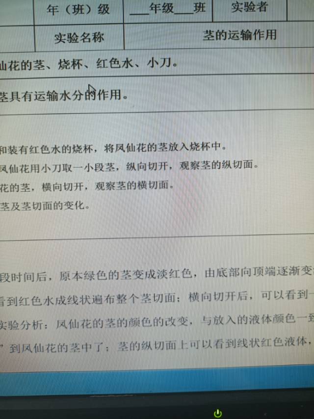 年级科目:四年级科学