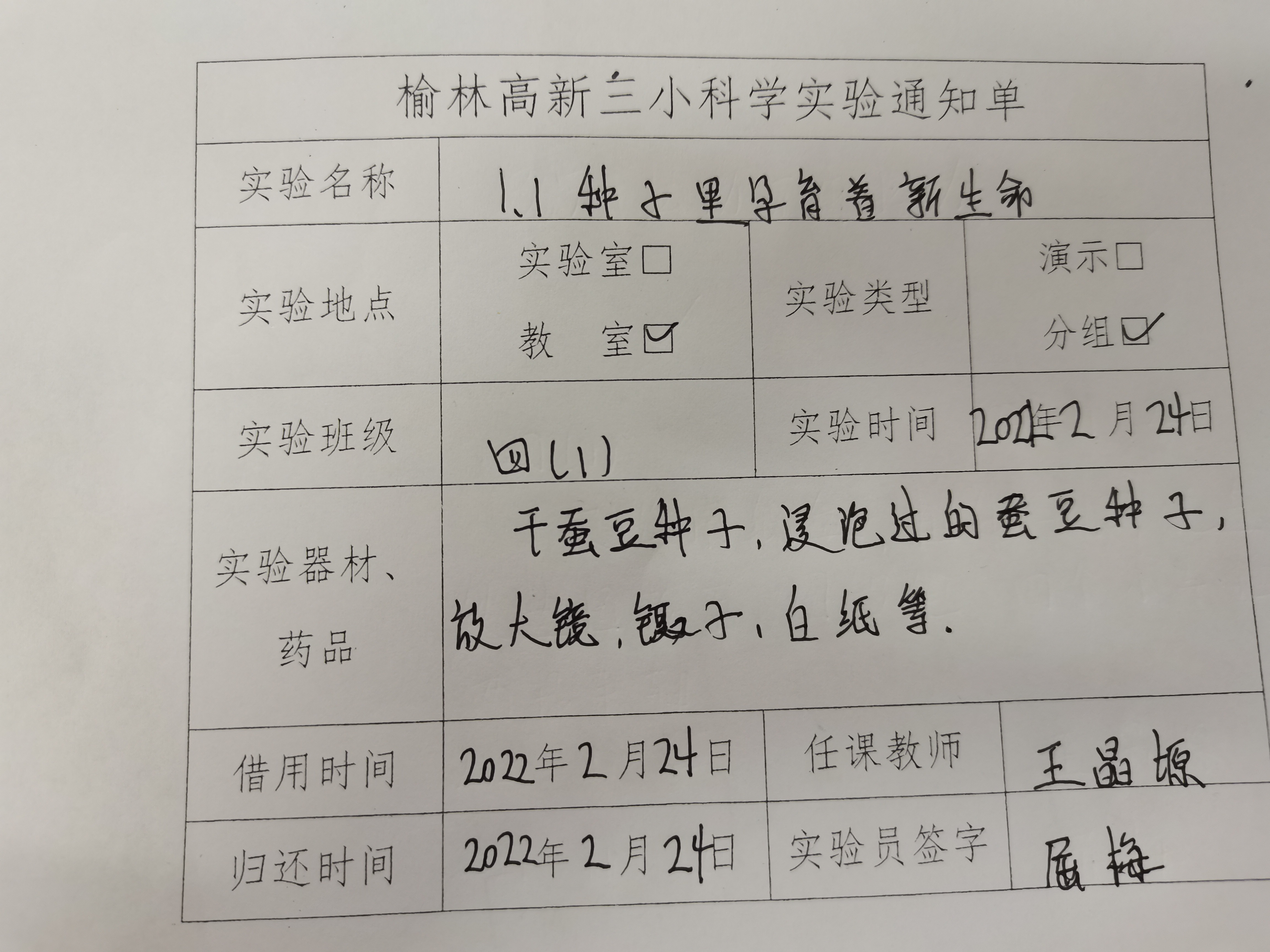 实验登记表