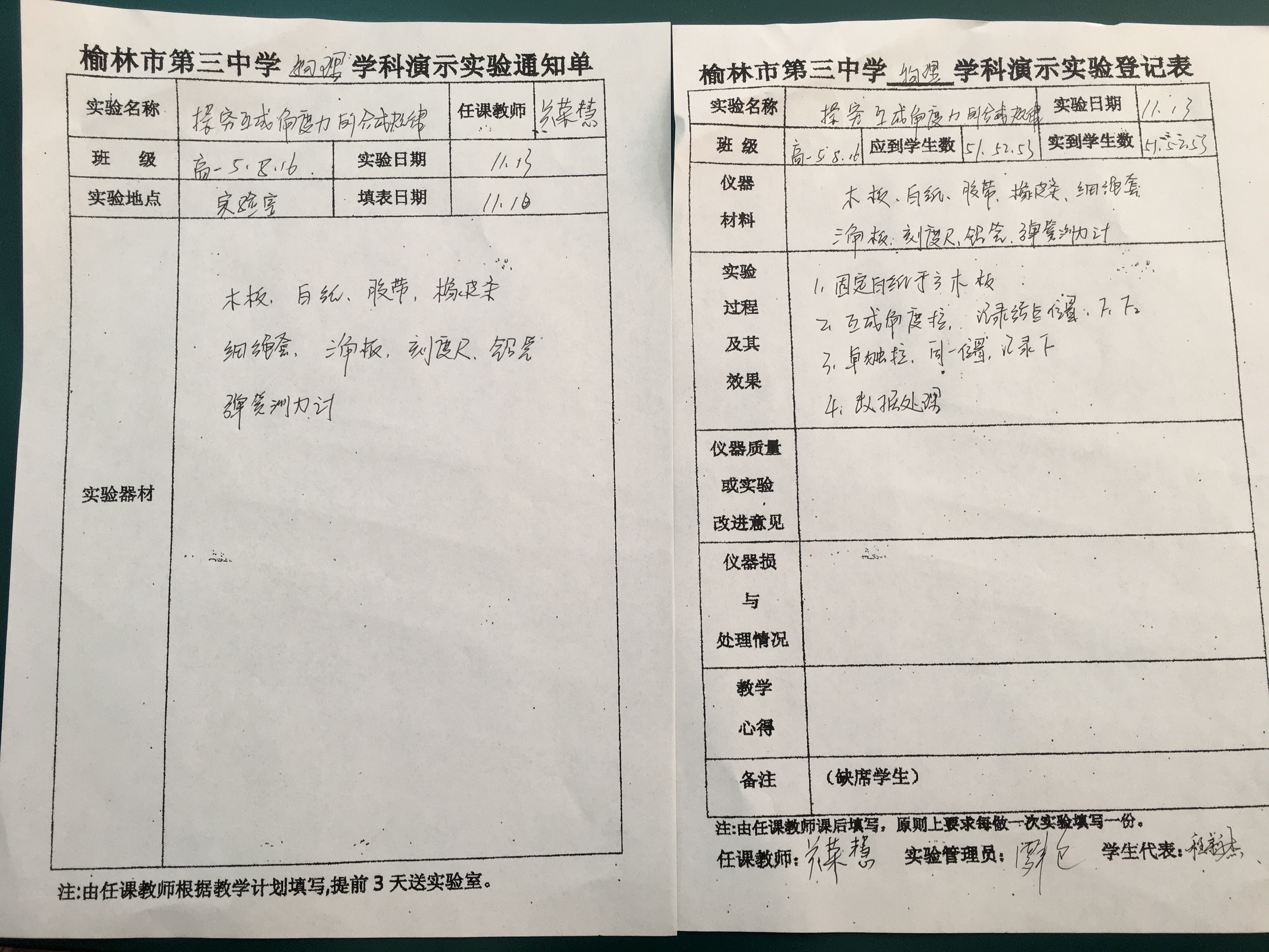 实验登记表