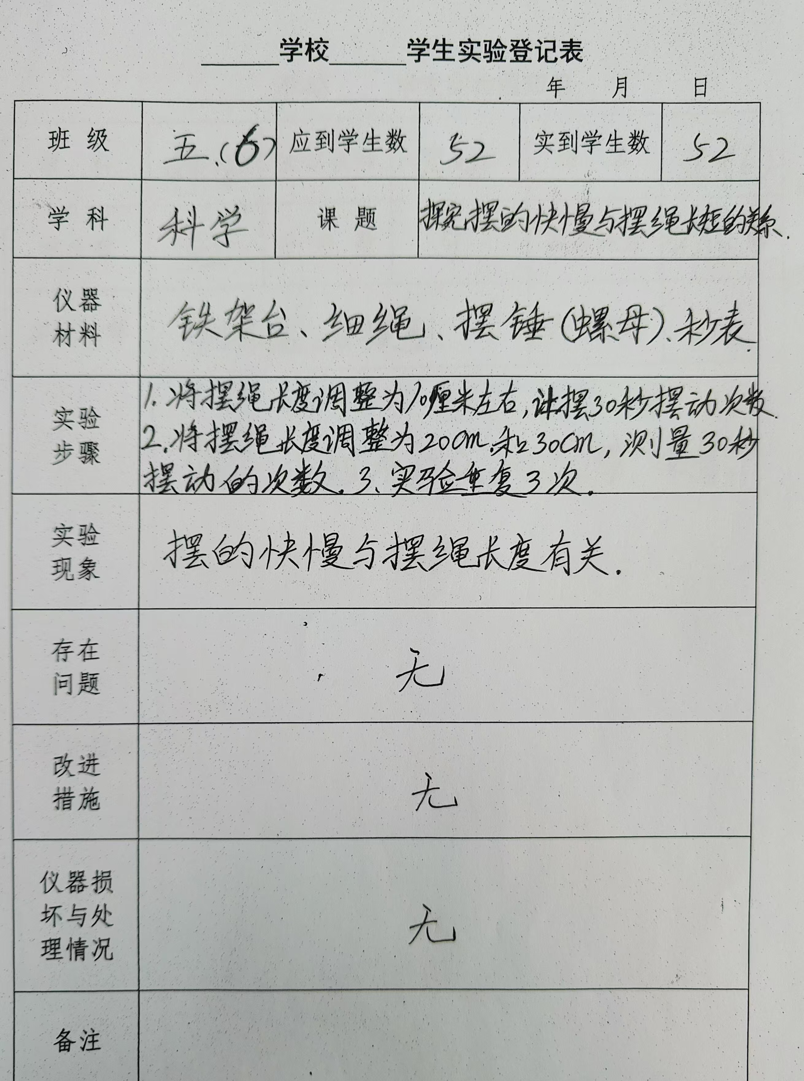 实验登记表