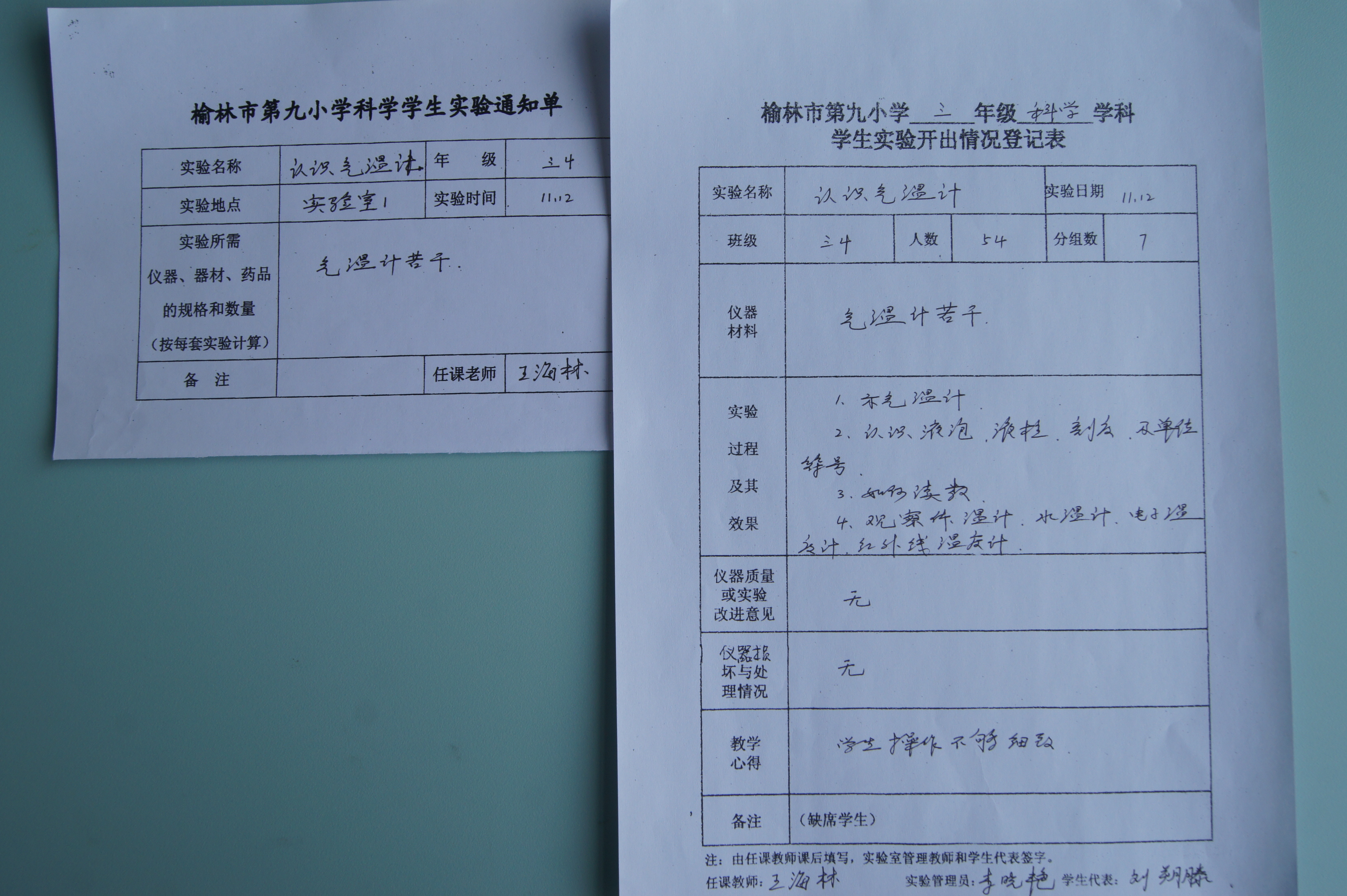 实验登记表