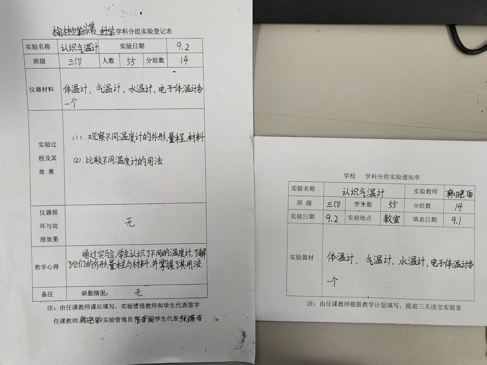 实验登记表