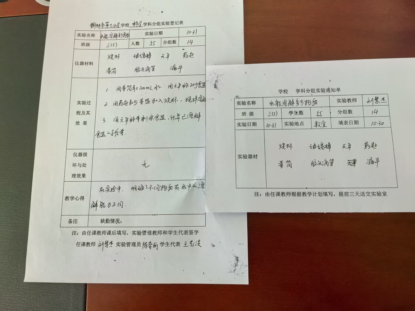实验登记表