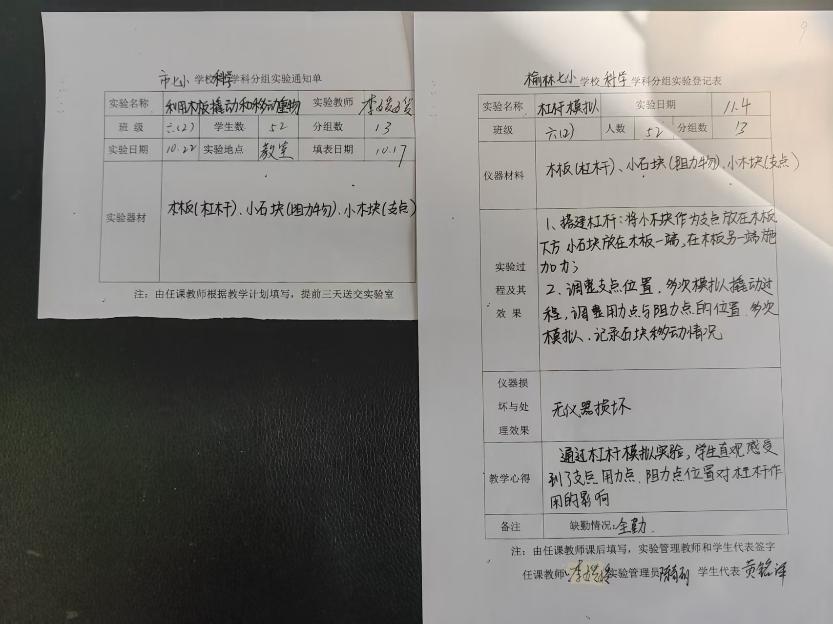 实验登记表