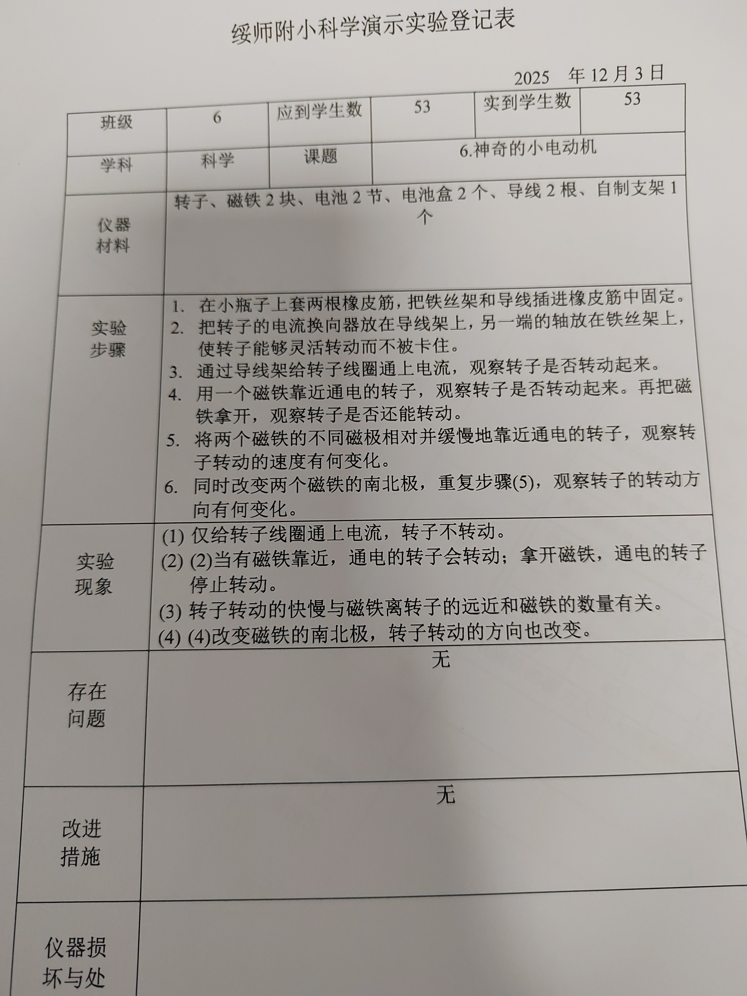 实验登记表