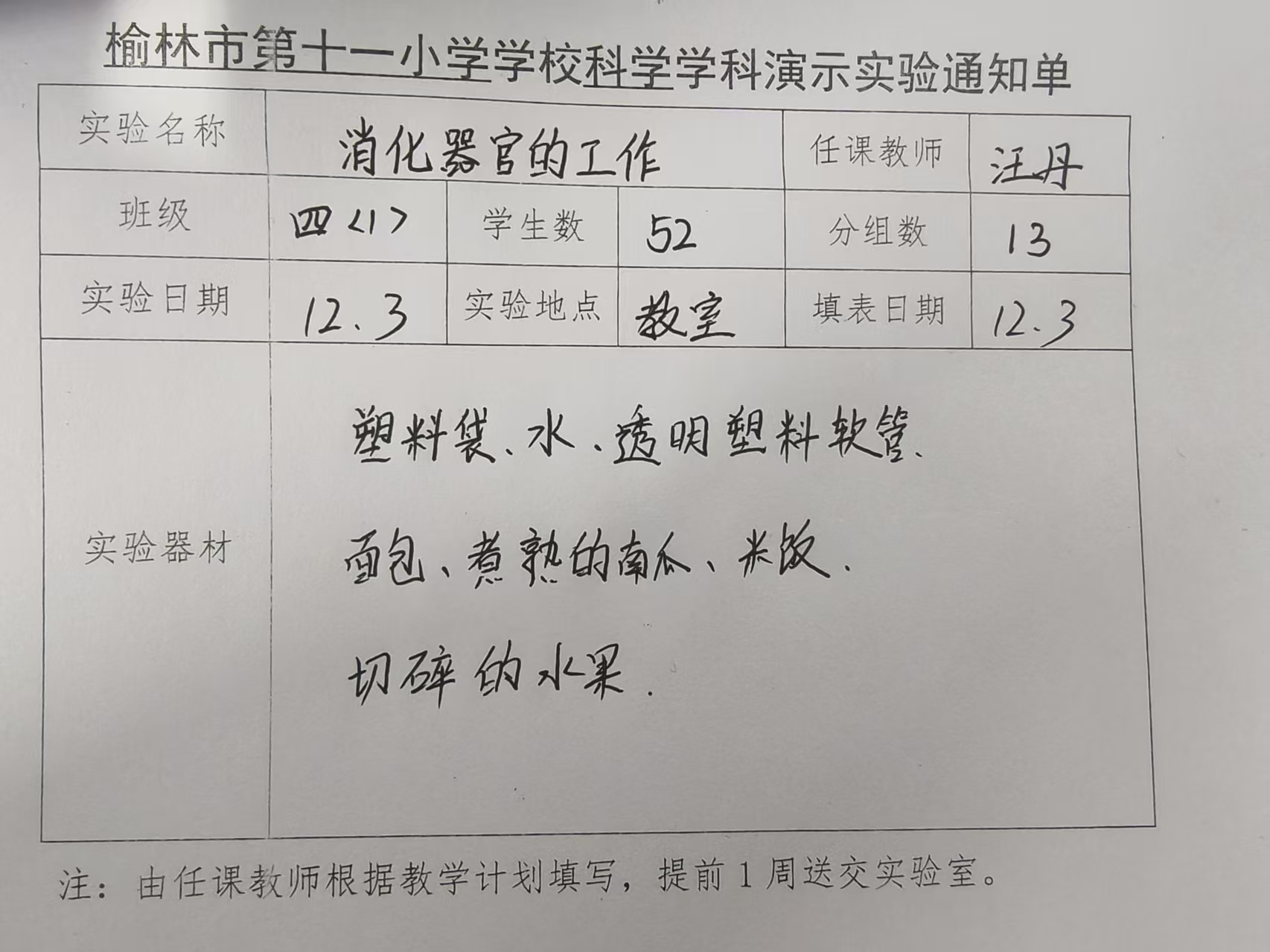 实验登记表