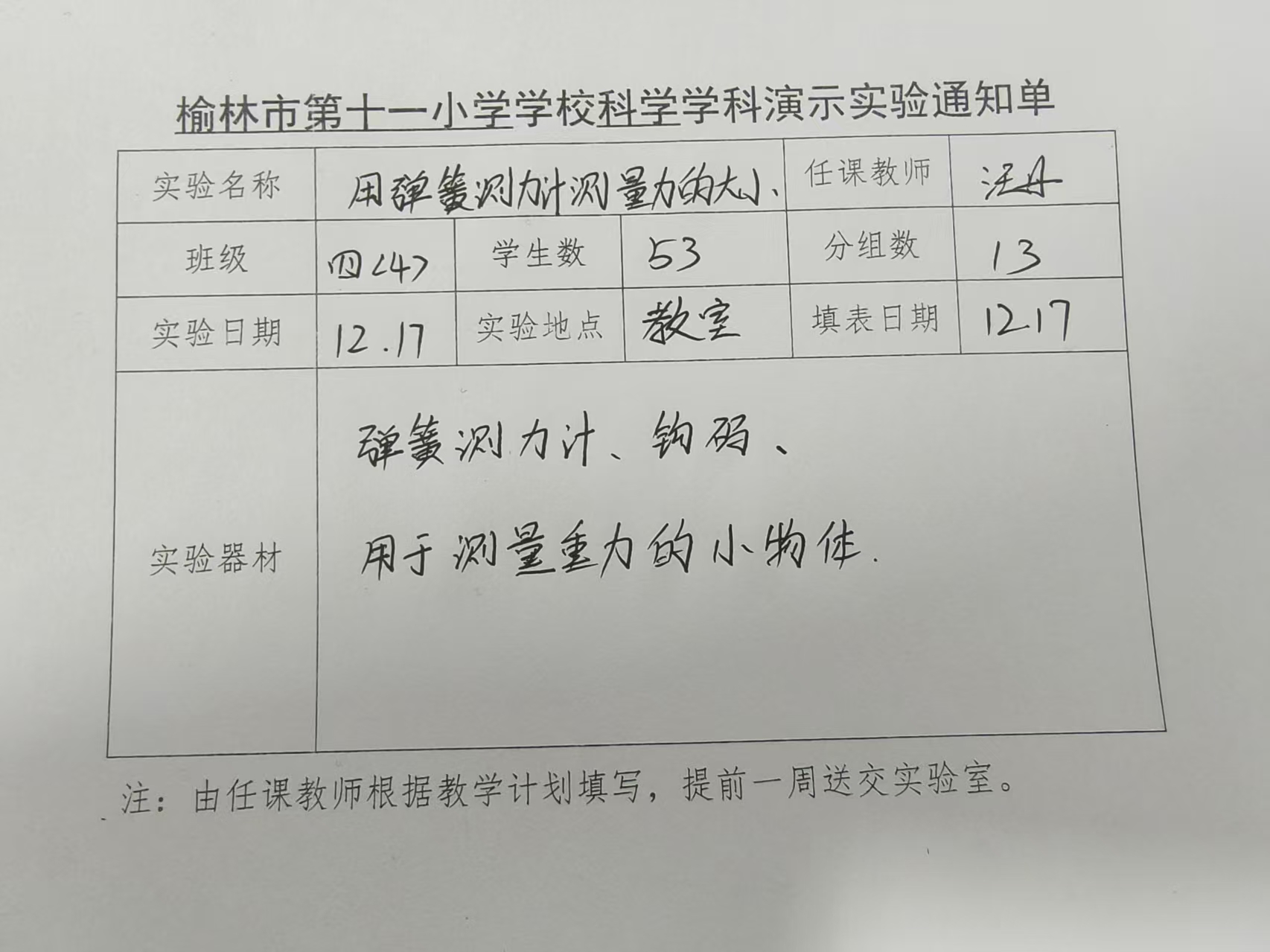 实验登记表
