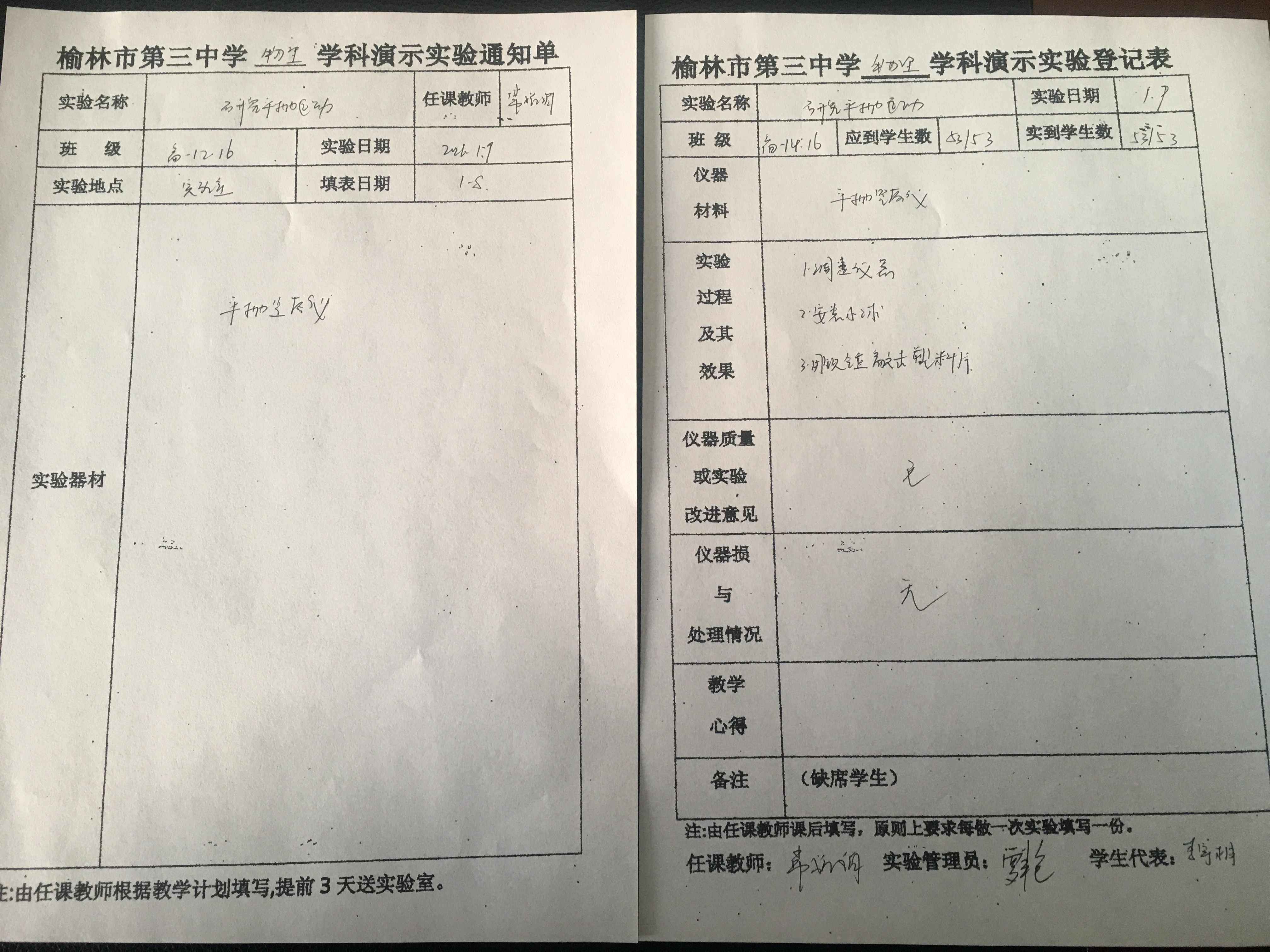 实验登记表