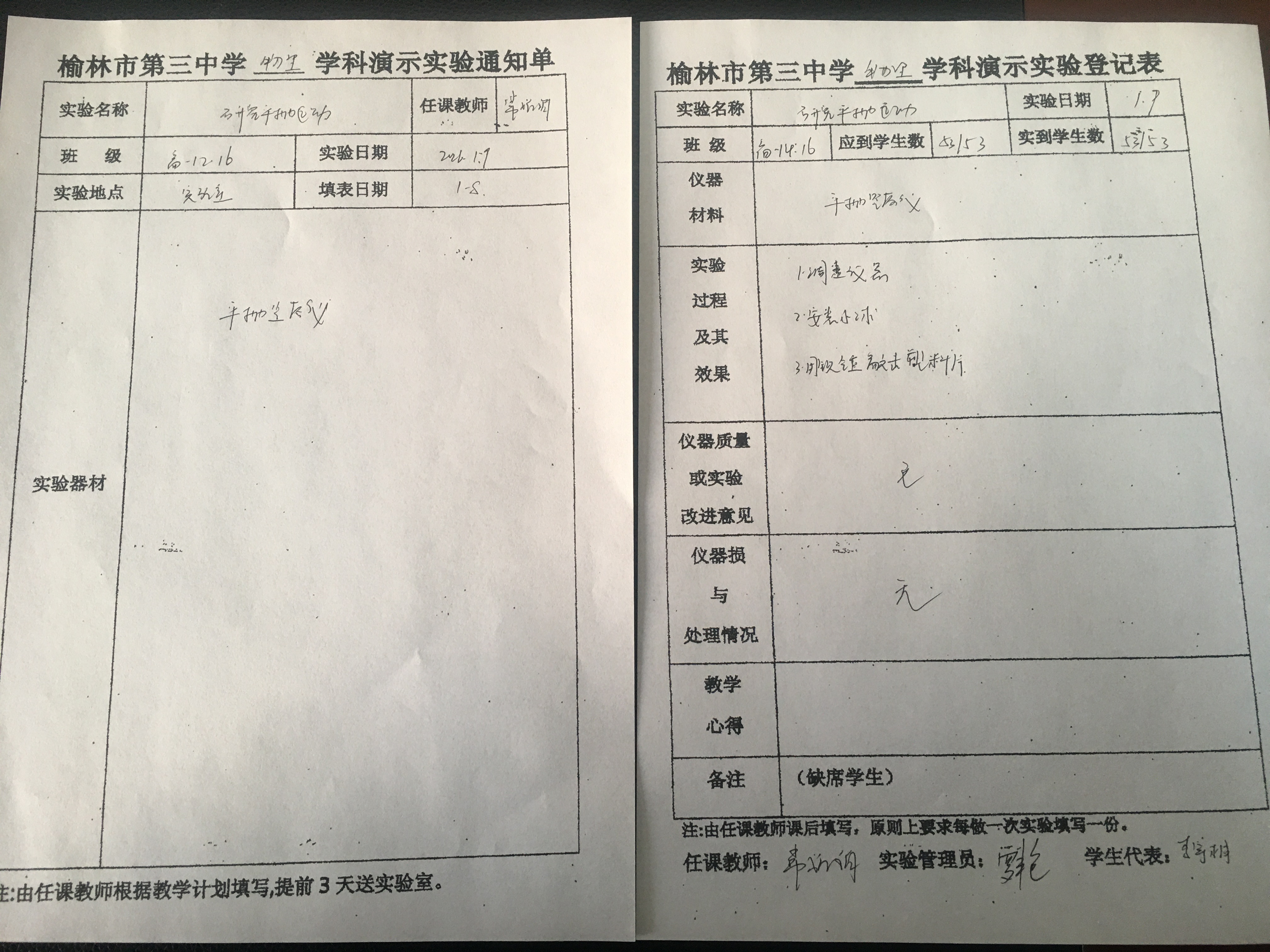 实验登记表