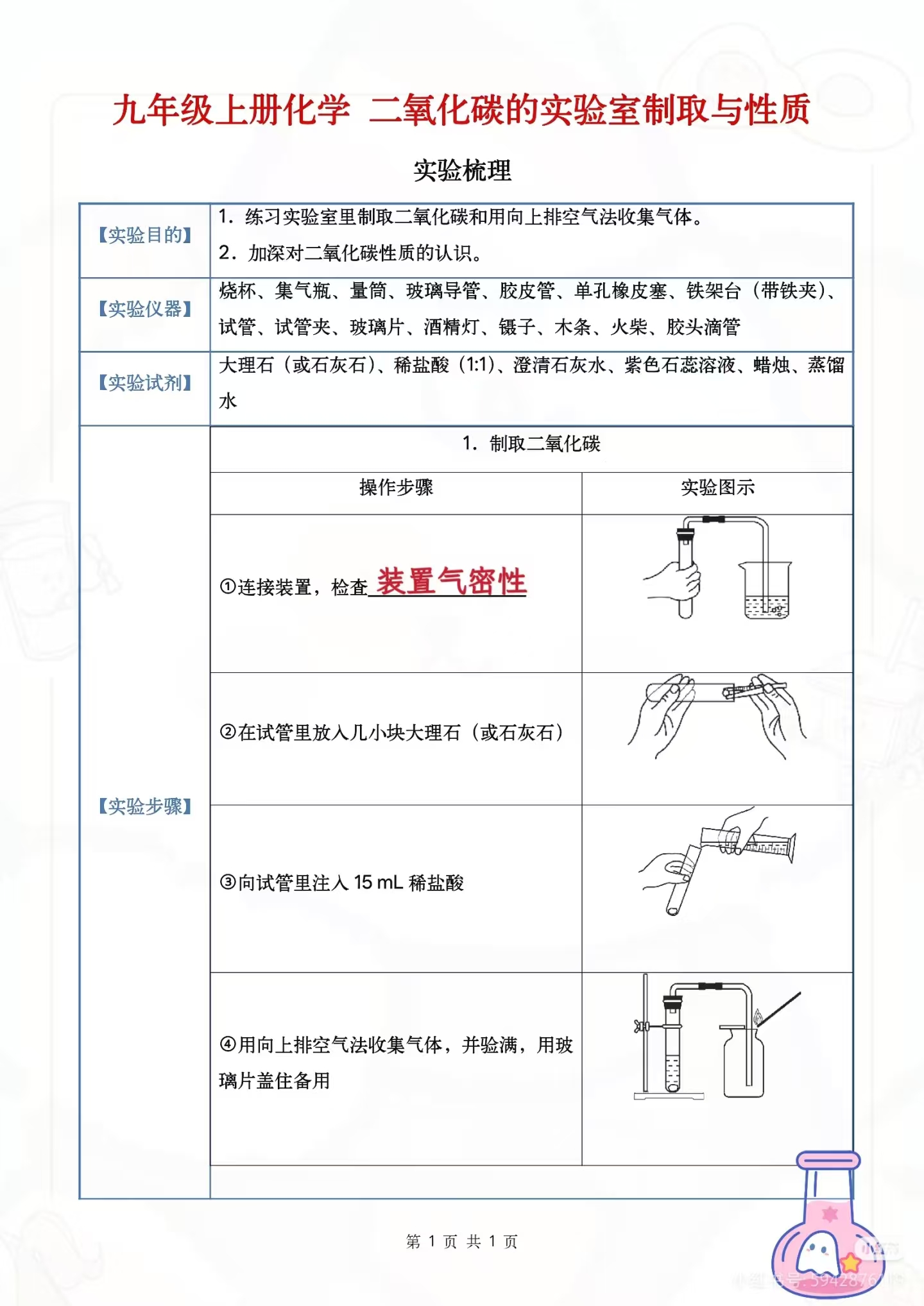 年级科目:九年级化学