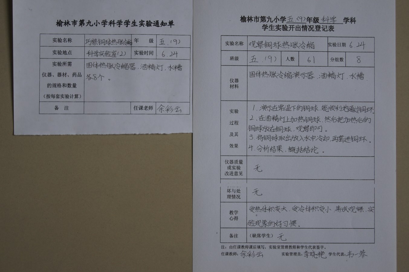 实验登记表