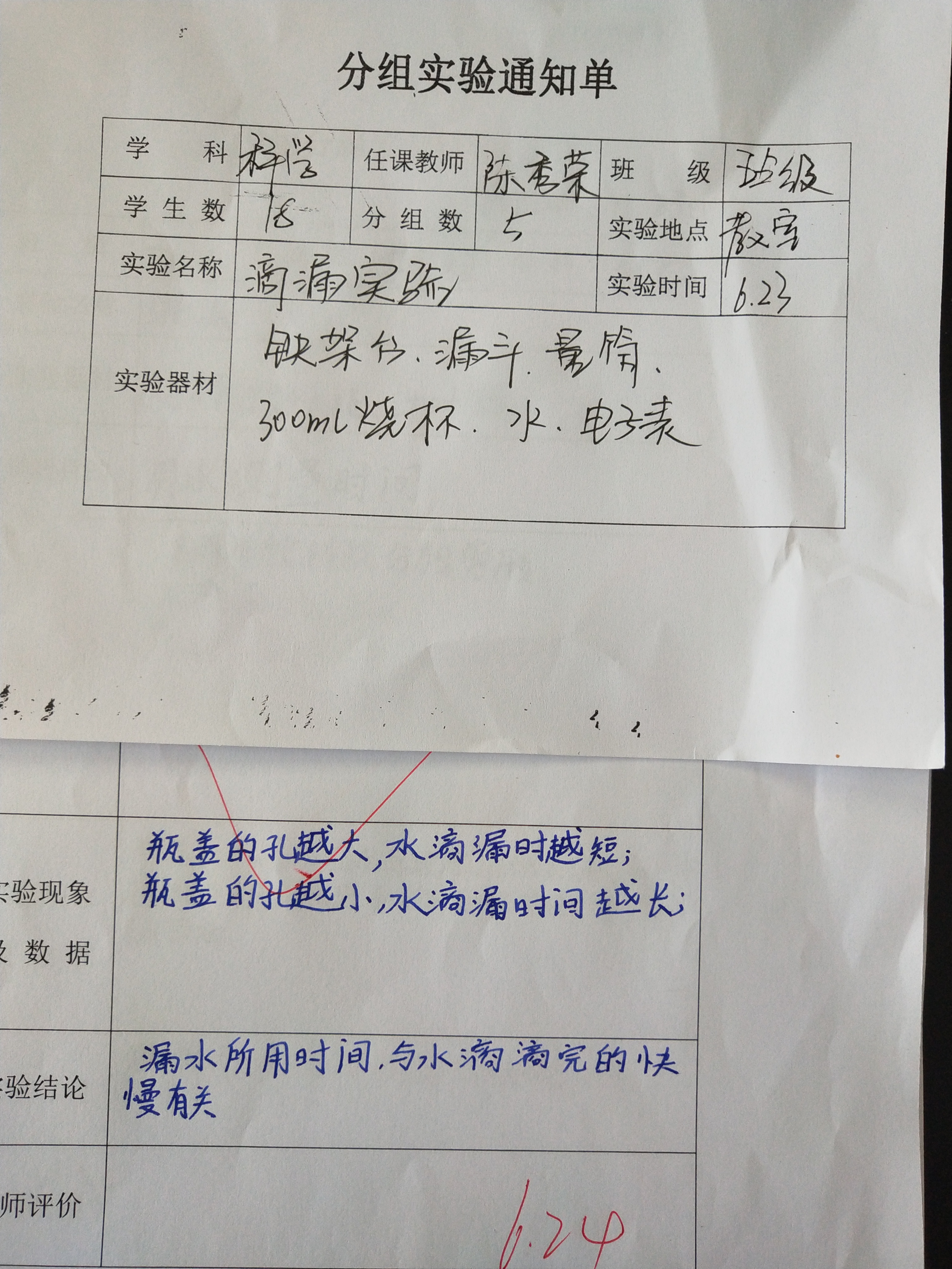 实验登记表