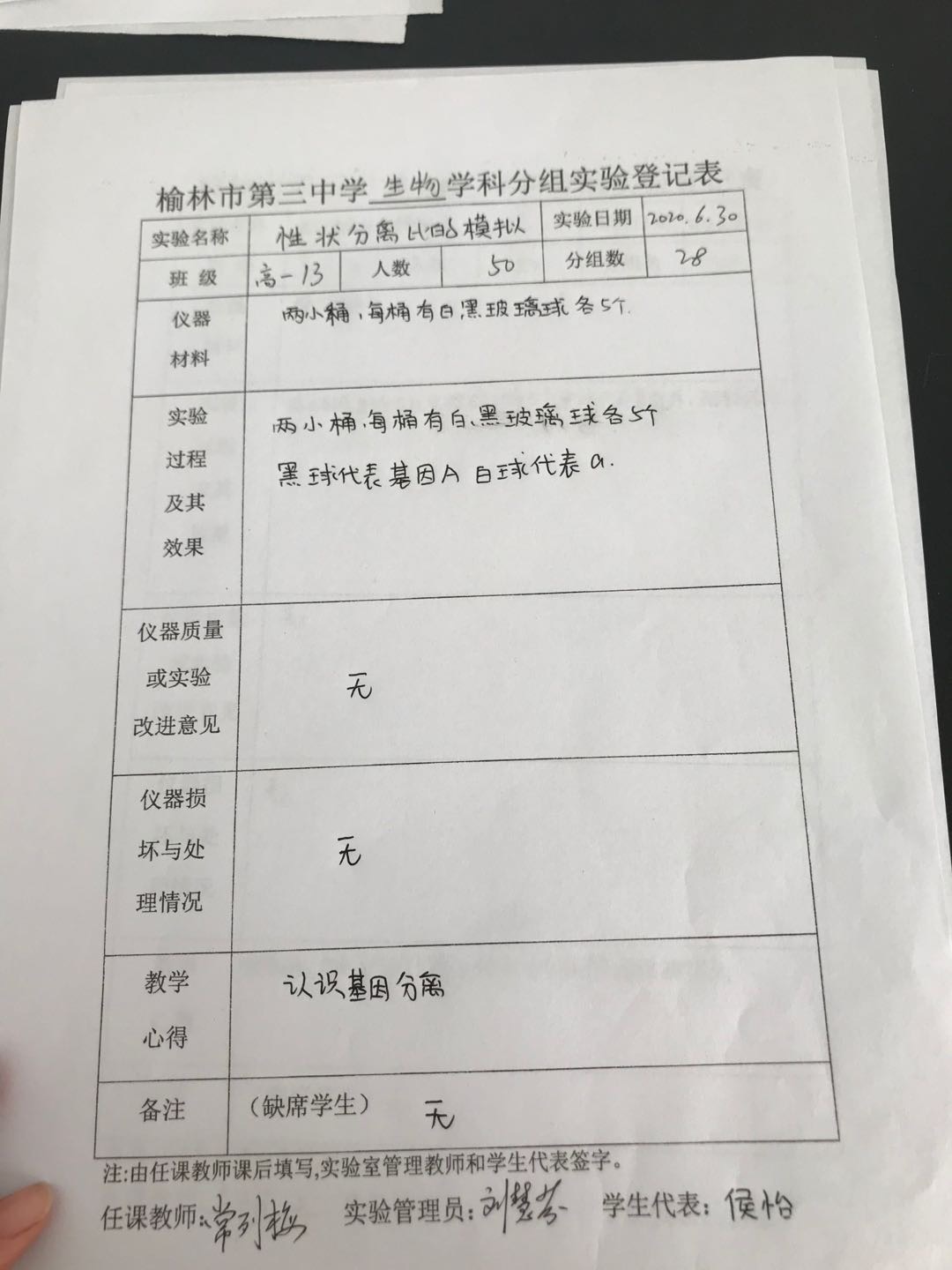 实验登记表