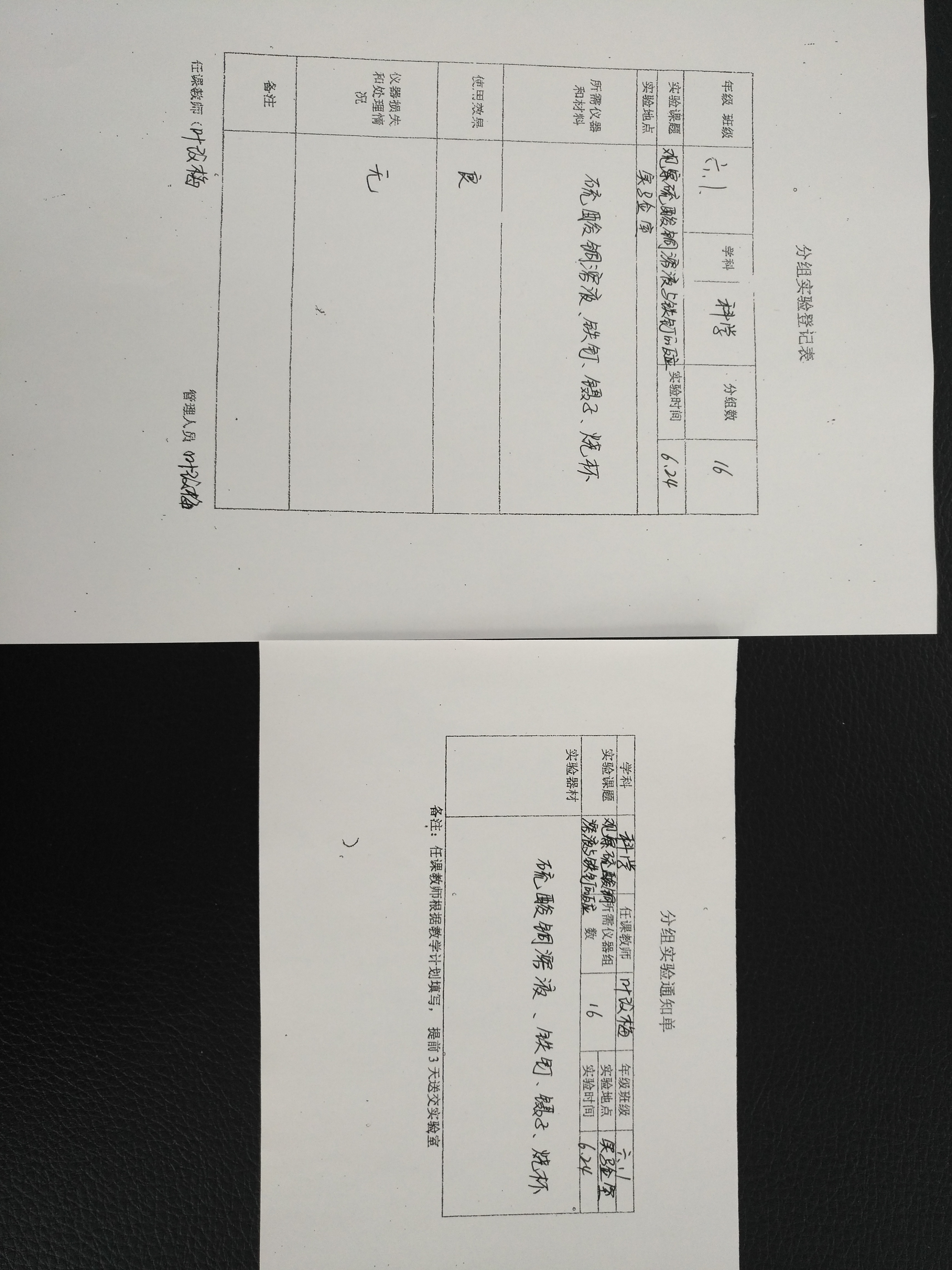 实验登记表