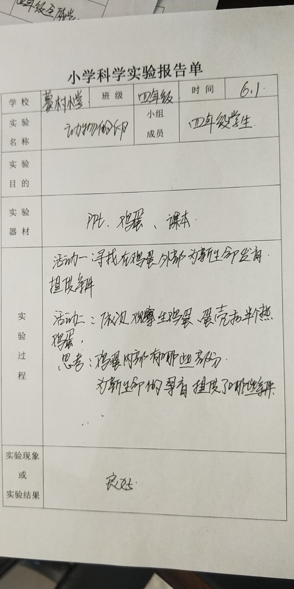 年级科目:四年级科学