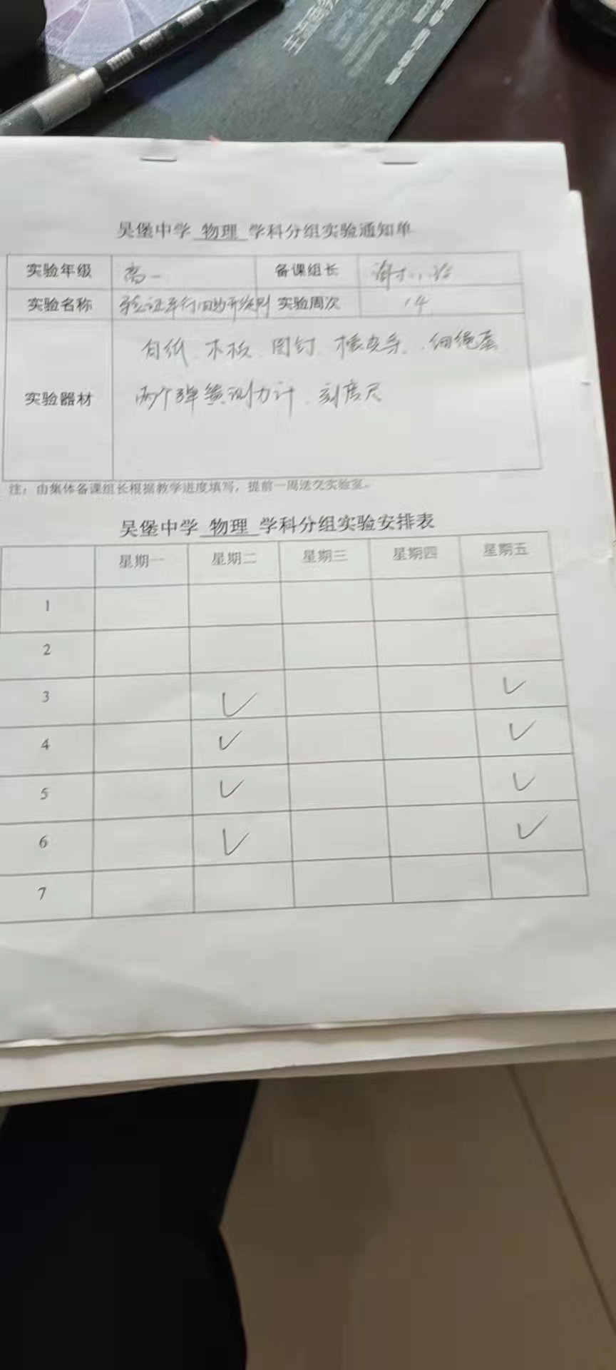 实验登记表