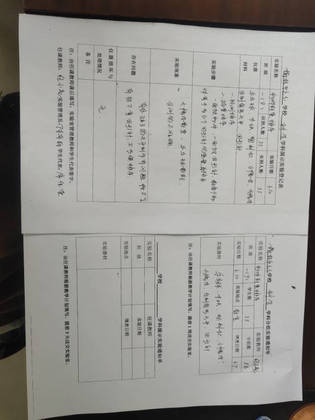 实验登记表