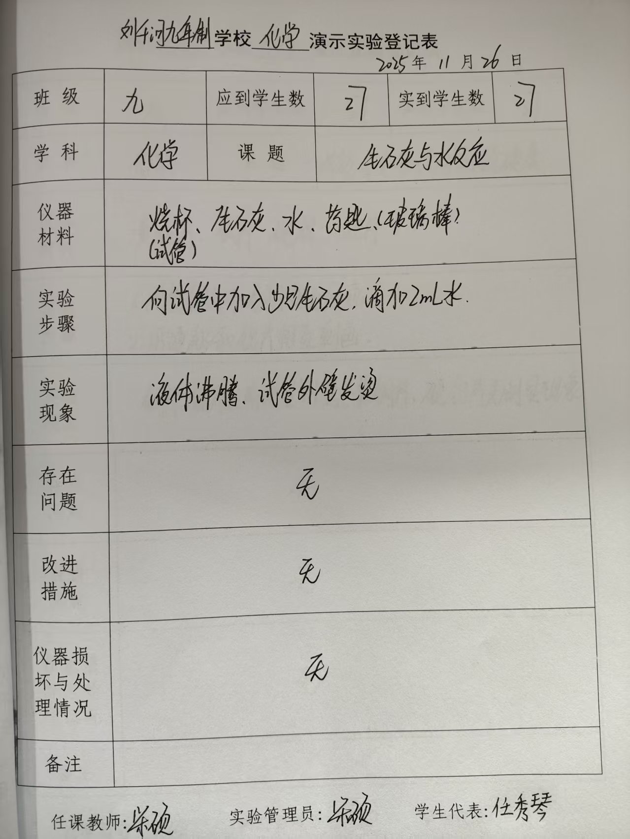 生石灰与水反应