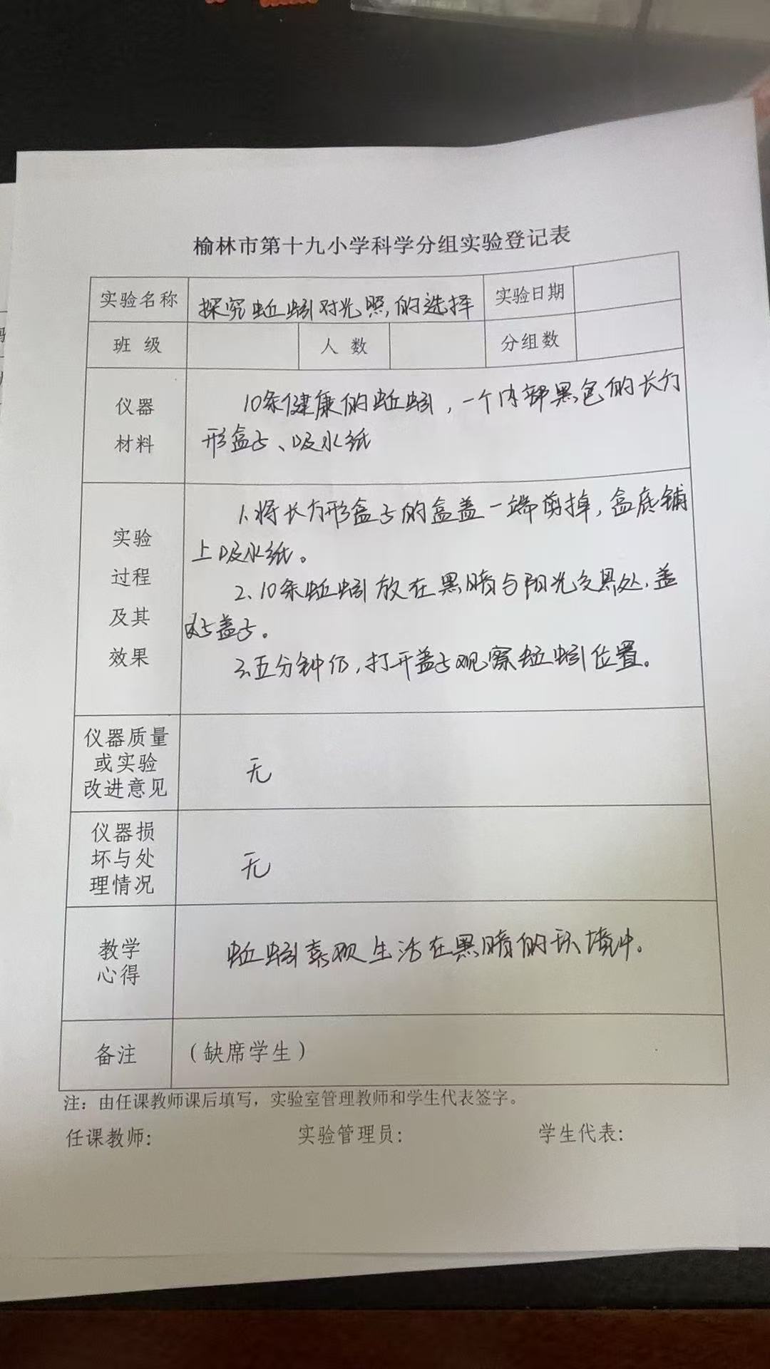 探究蚯蚓对光照的选择