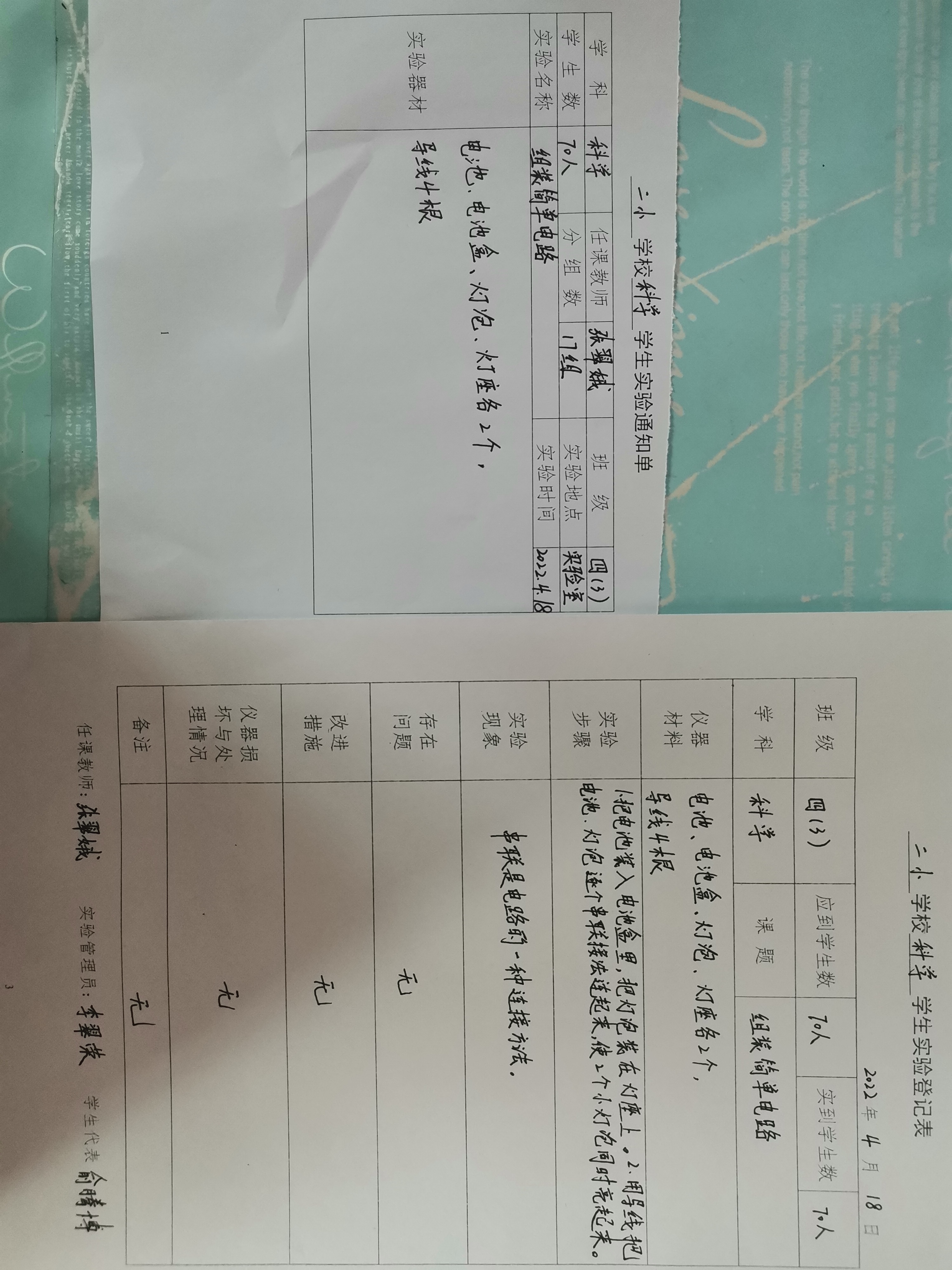 实验登记表