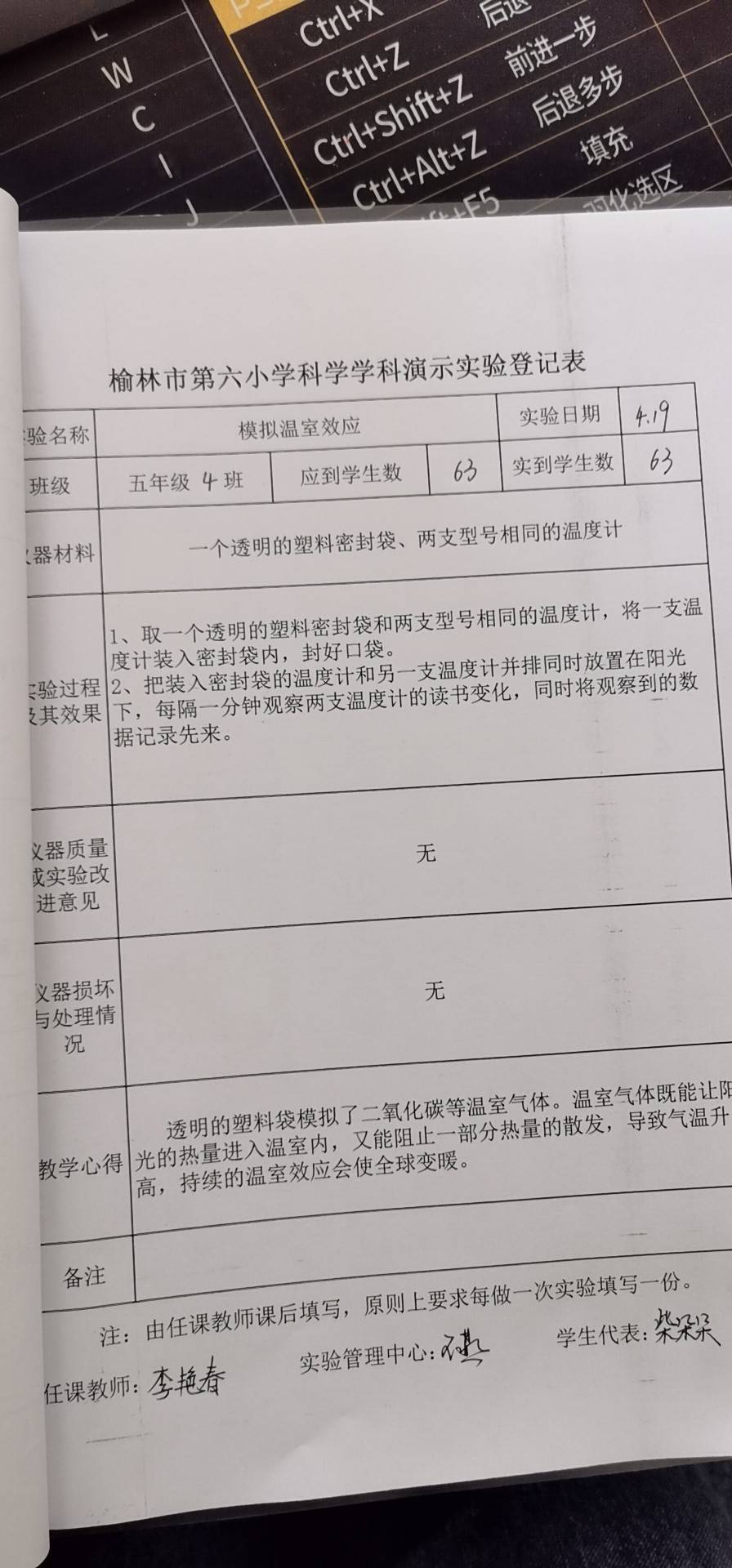 实验登记表