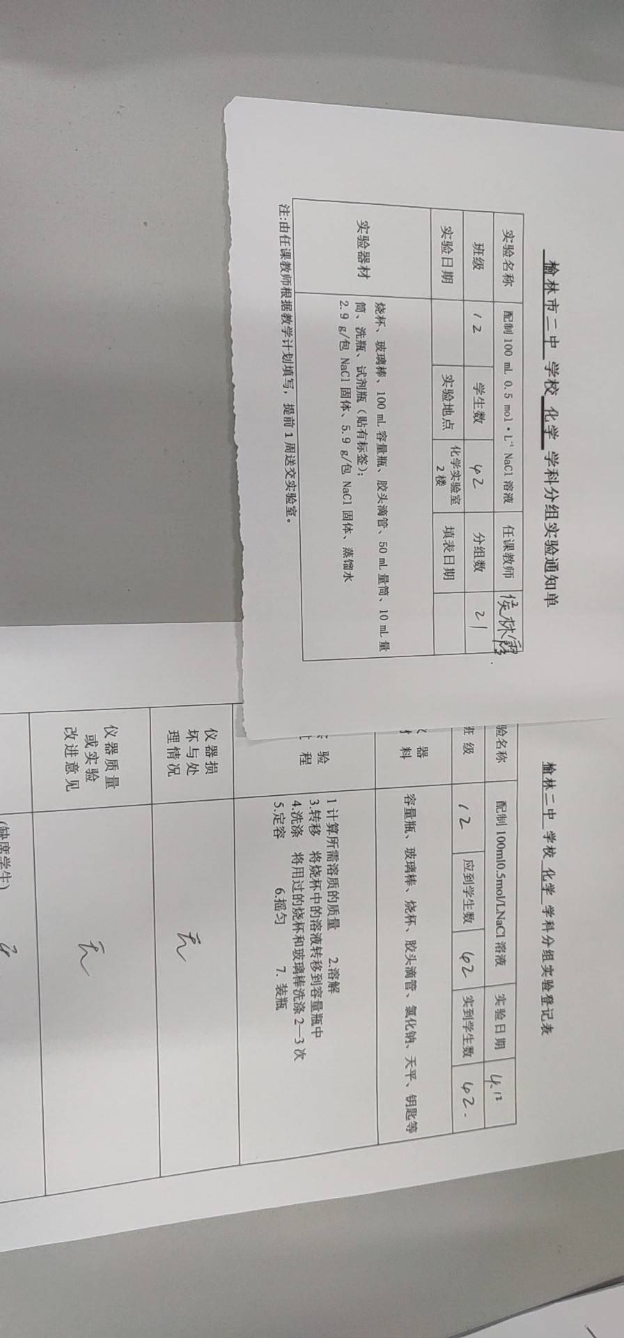 实验登记表
