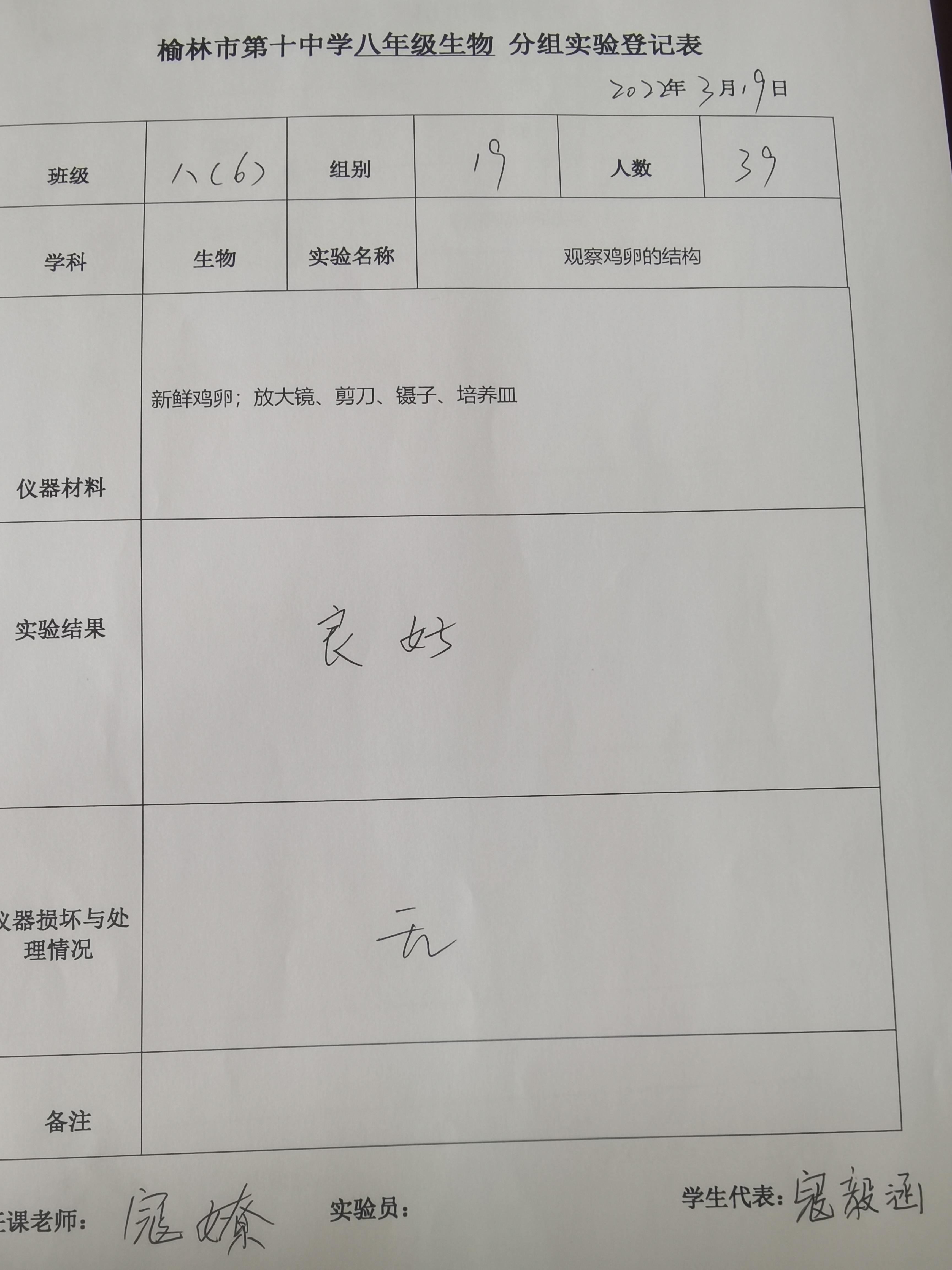 观察鸡卵的结构