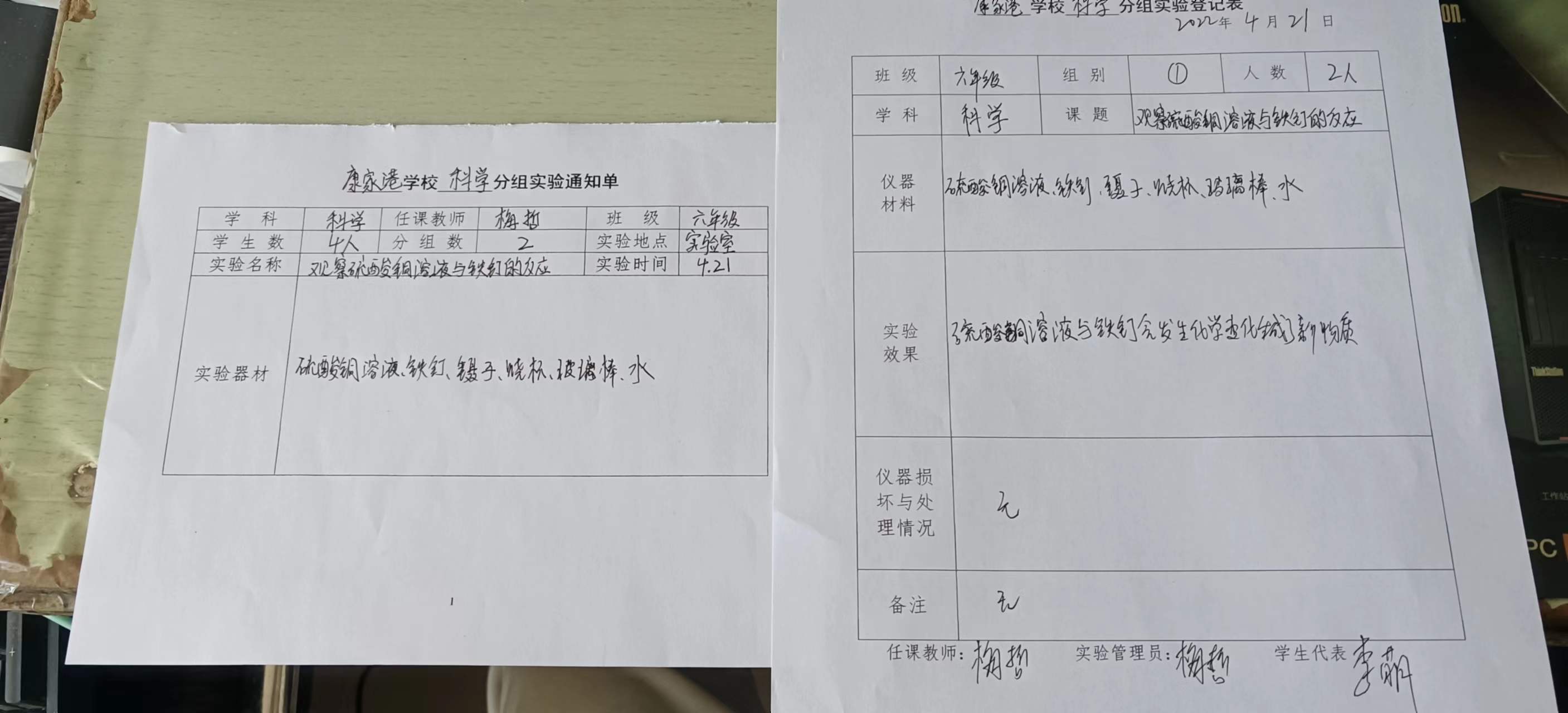 实验登记表