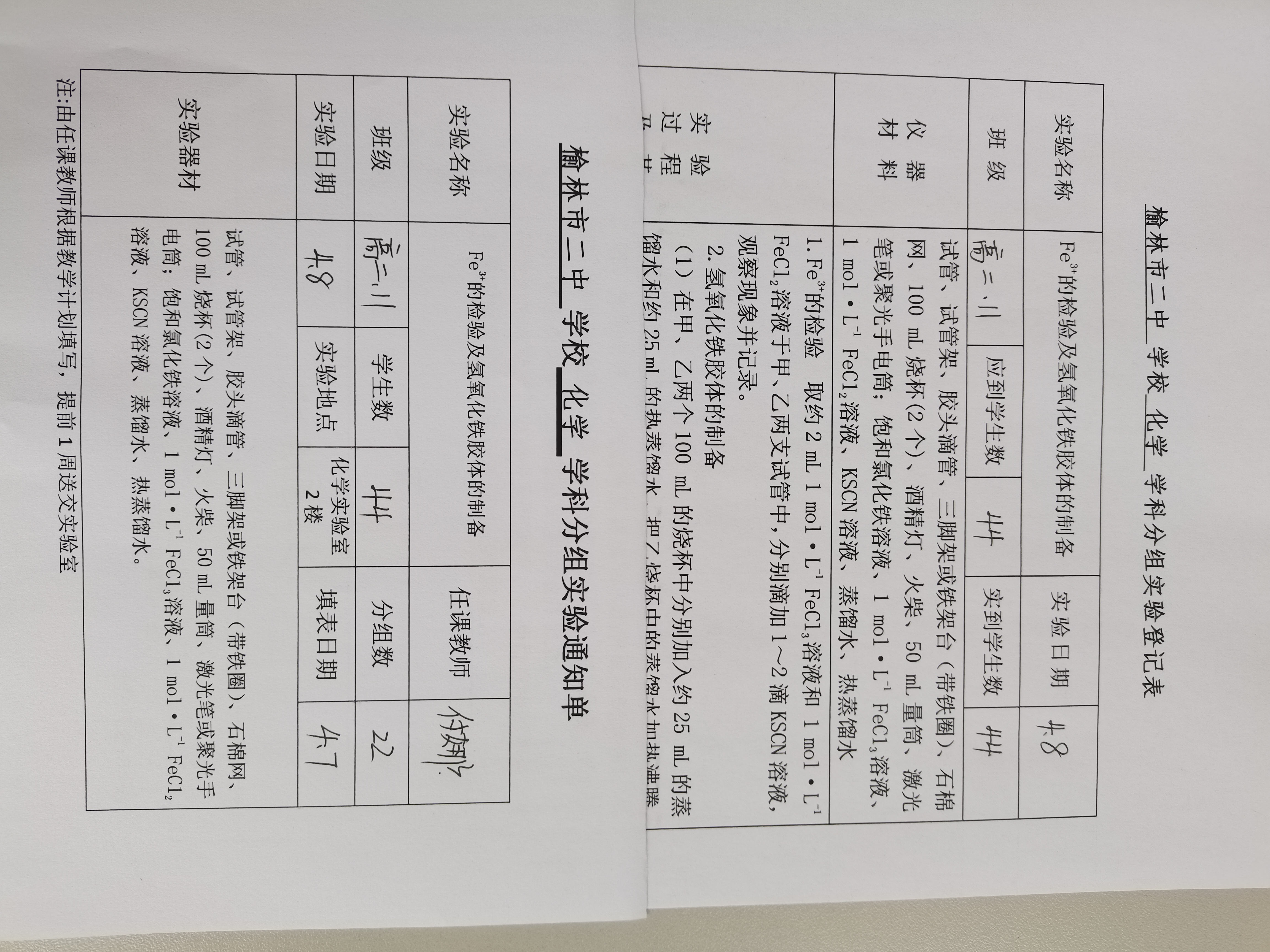 实验登记表