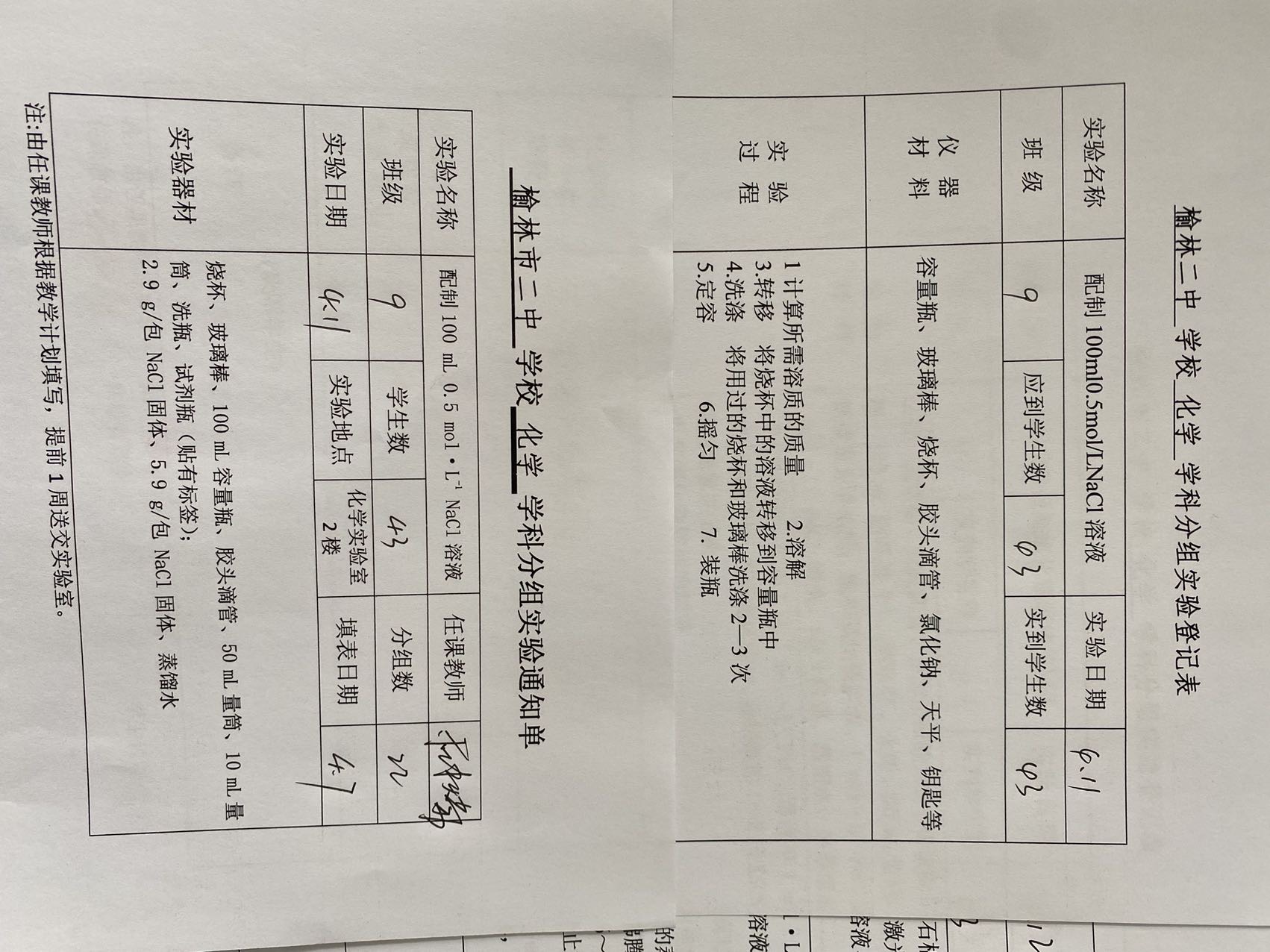 实验登记表