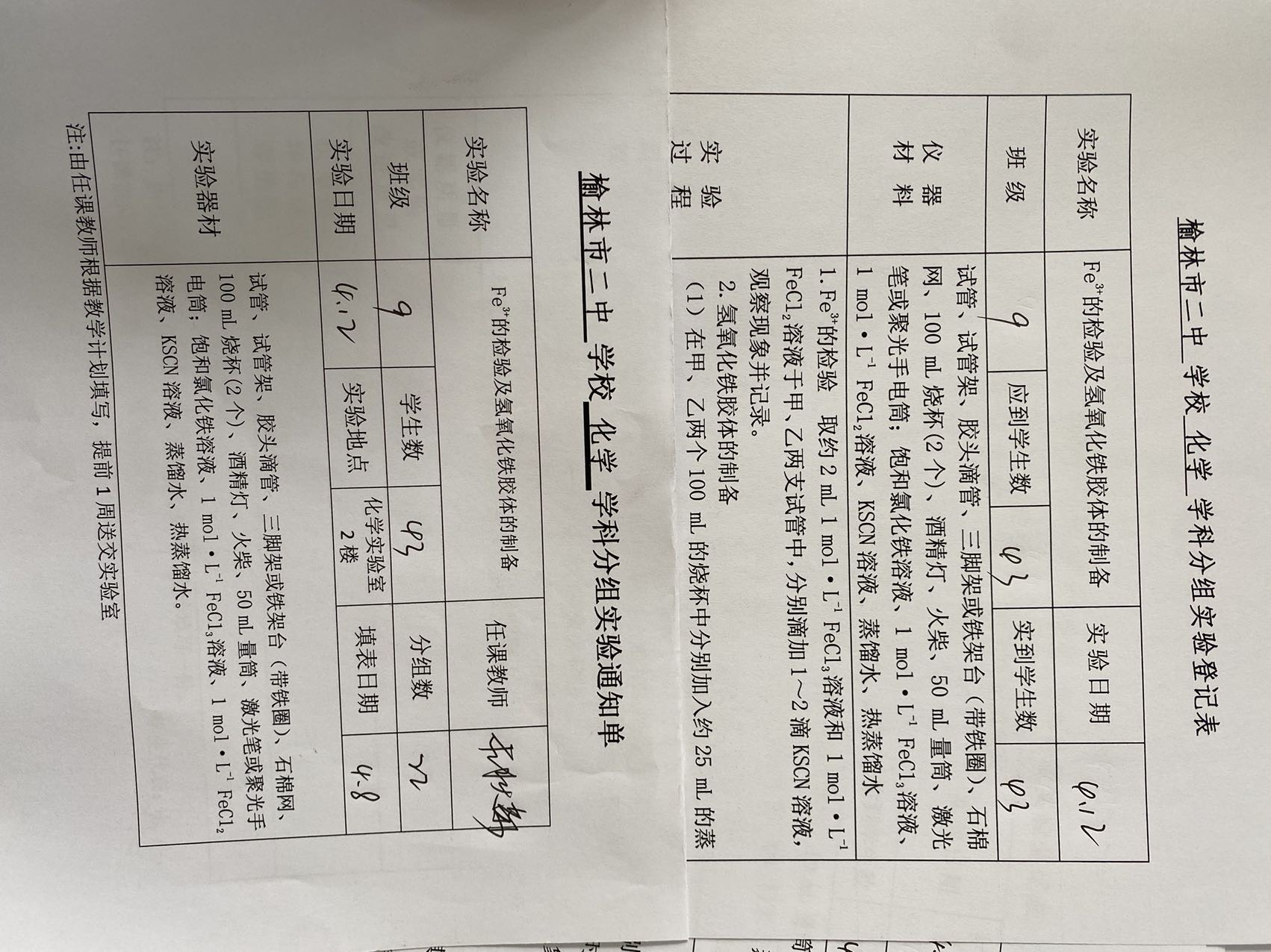 铁离子检验及胶体制备