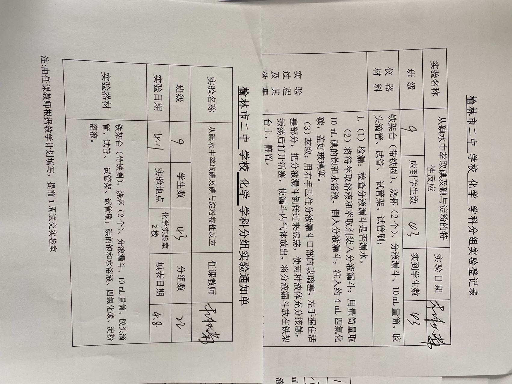 实验登记表