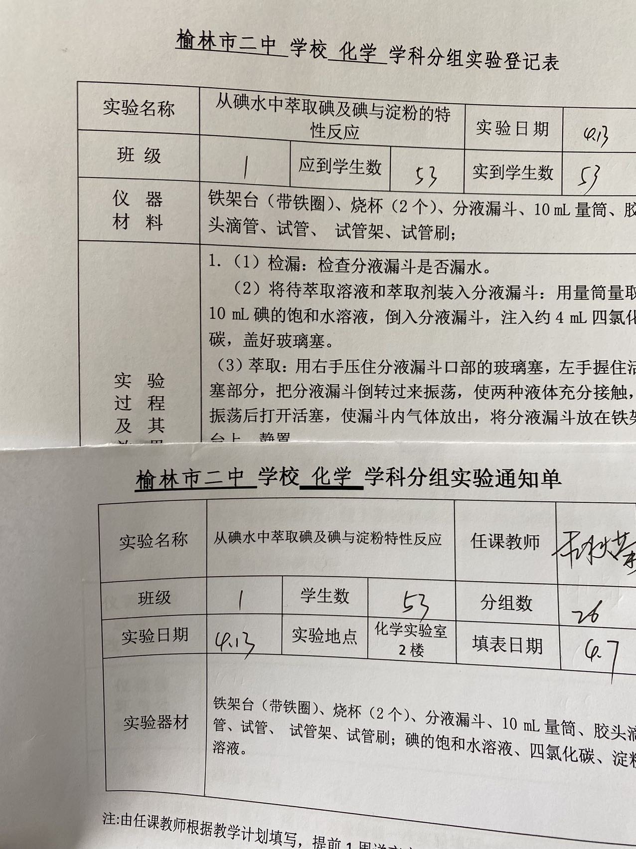 实验登记表