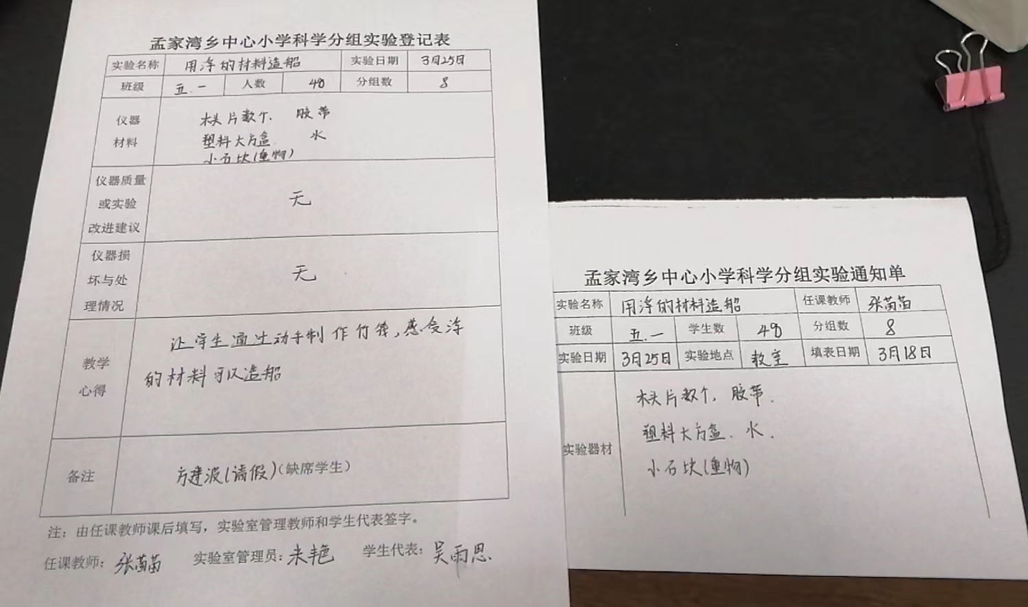 实验登记表