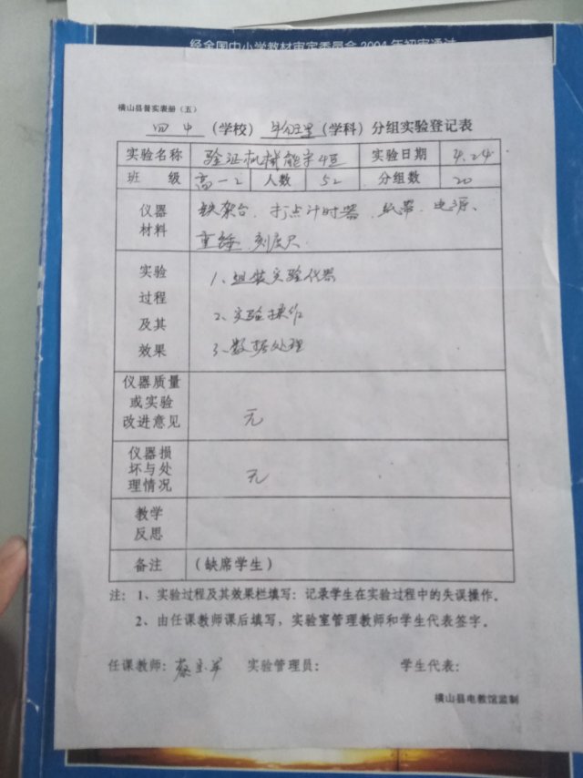 验证机械能守恒