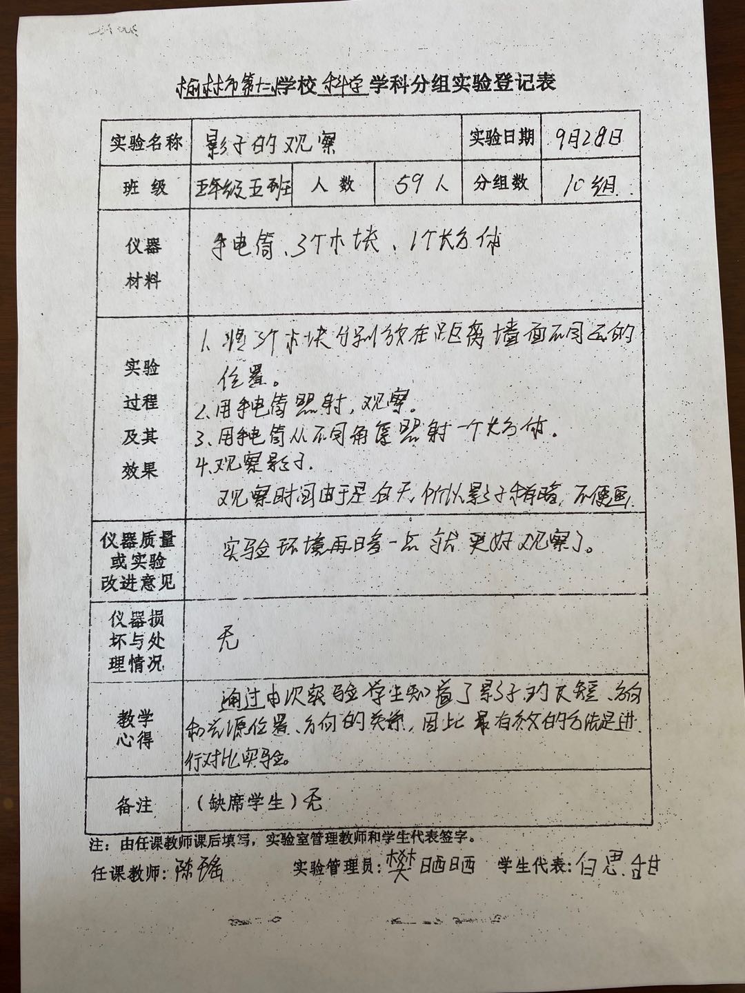 实验登记表