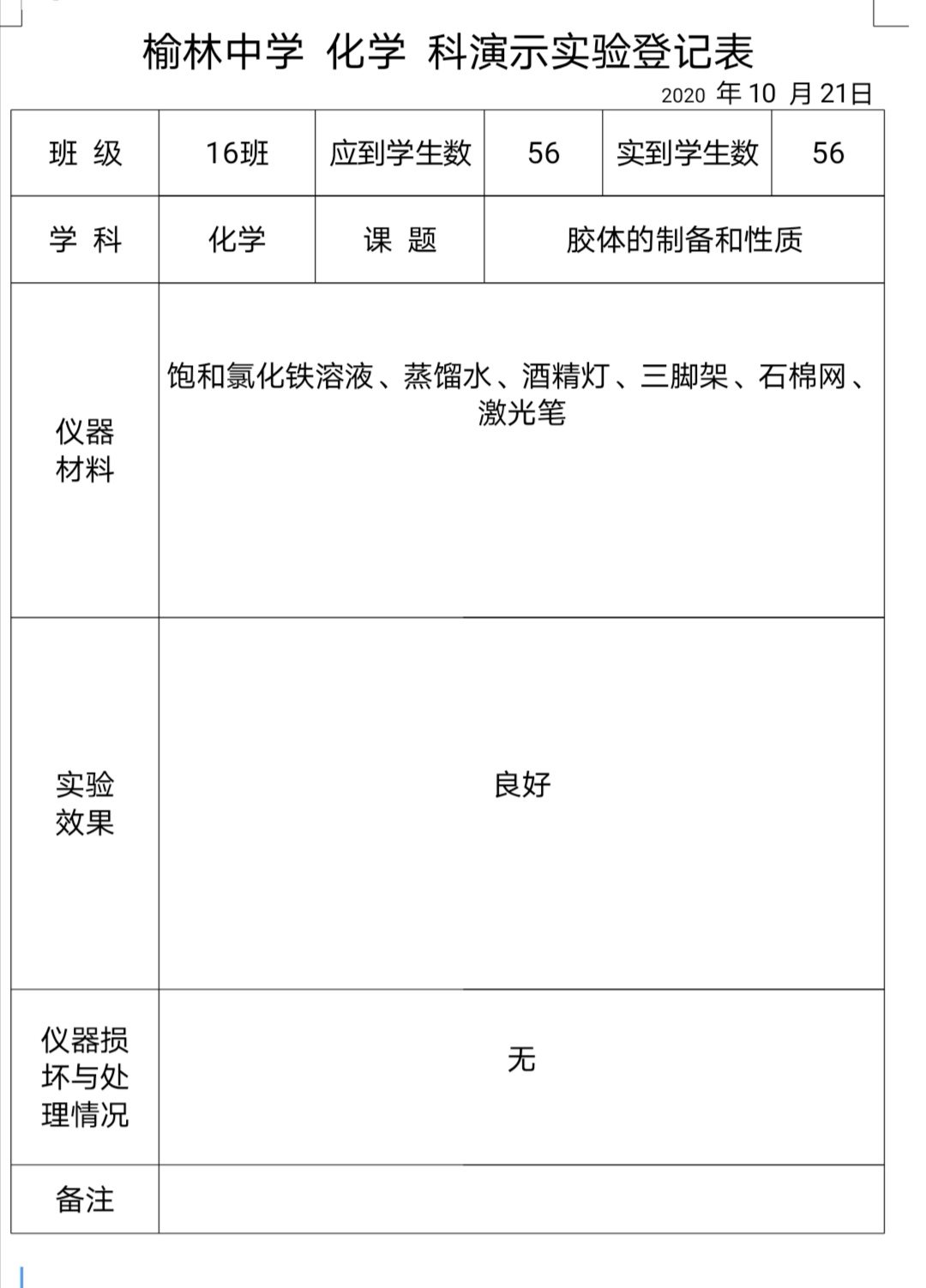 实验登记表