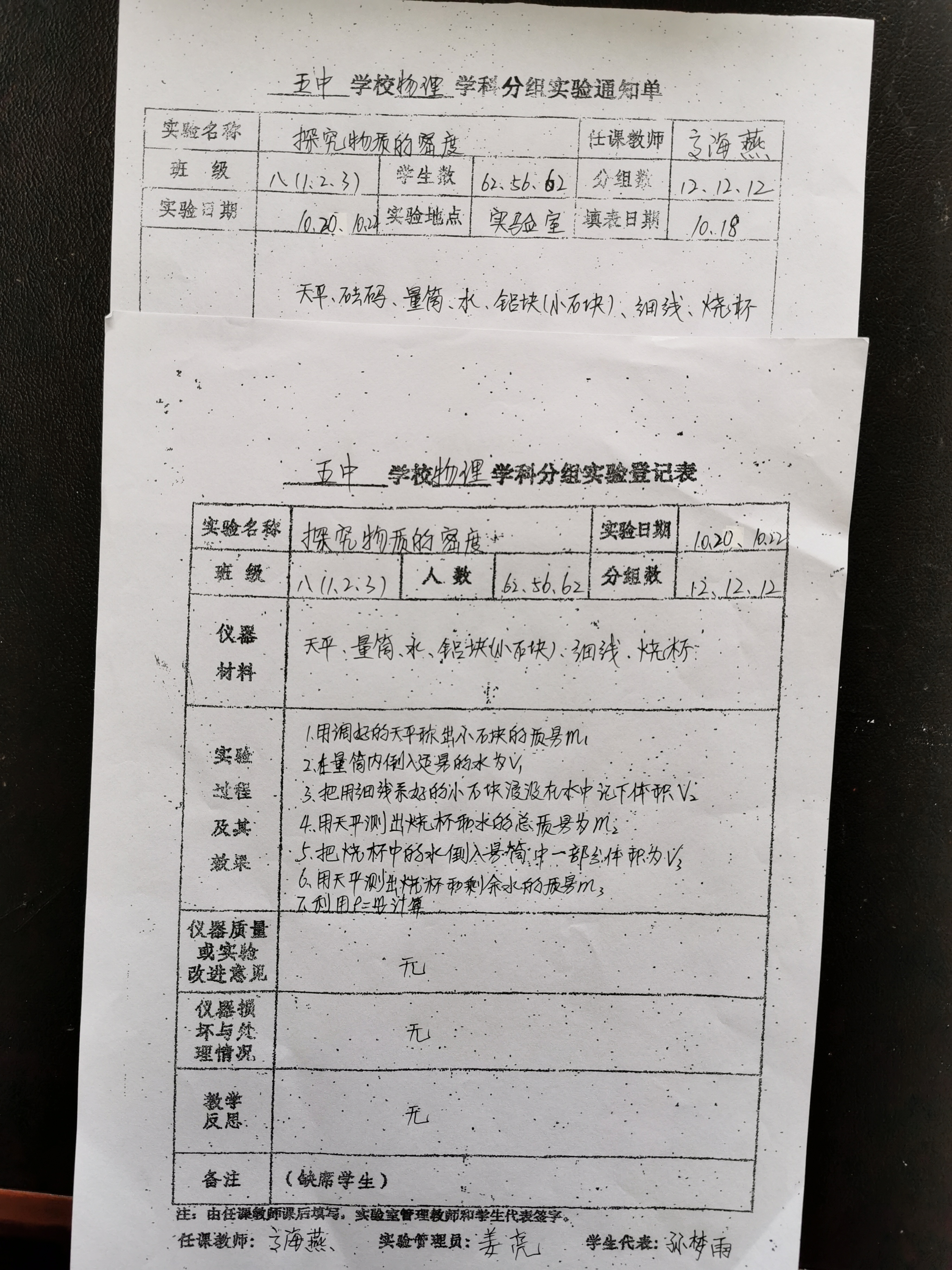 实验登记表
