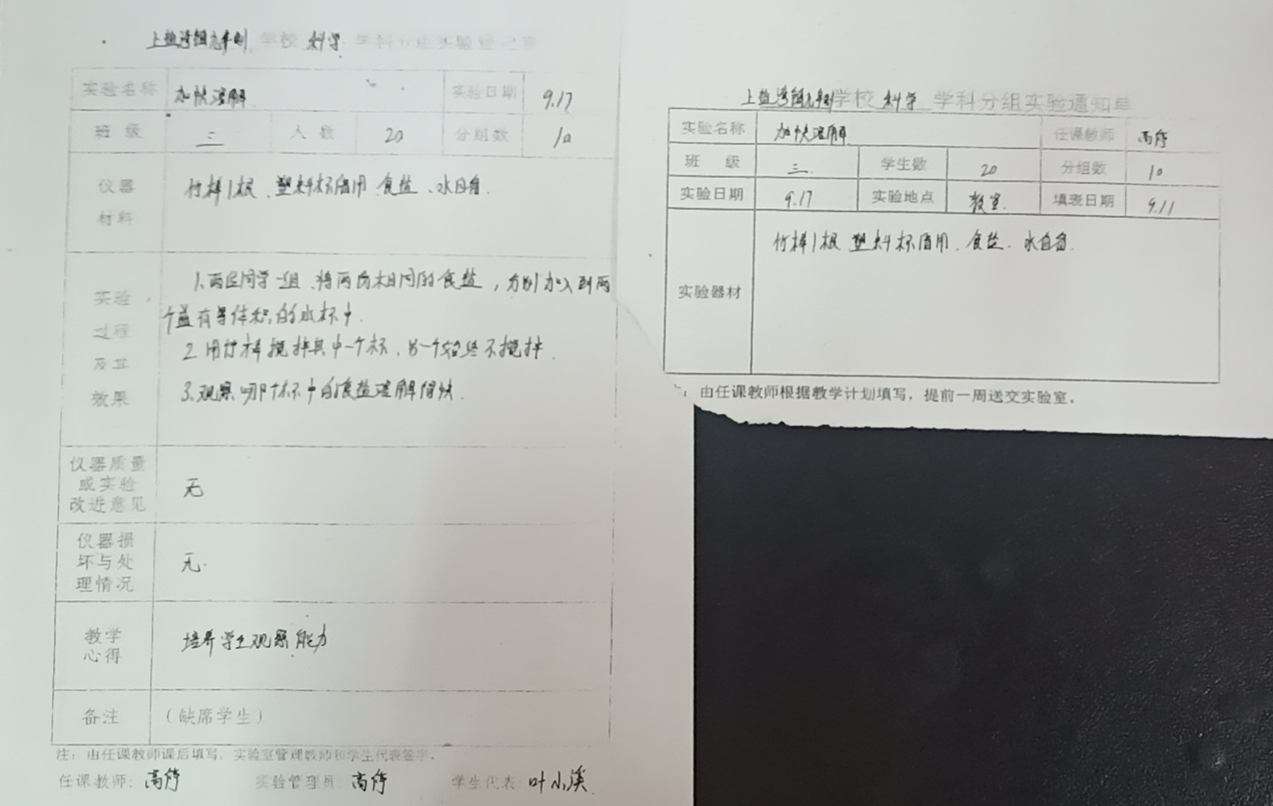实验登记表