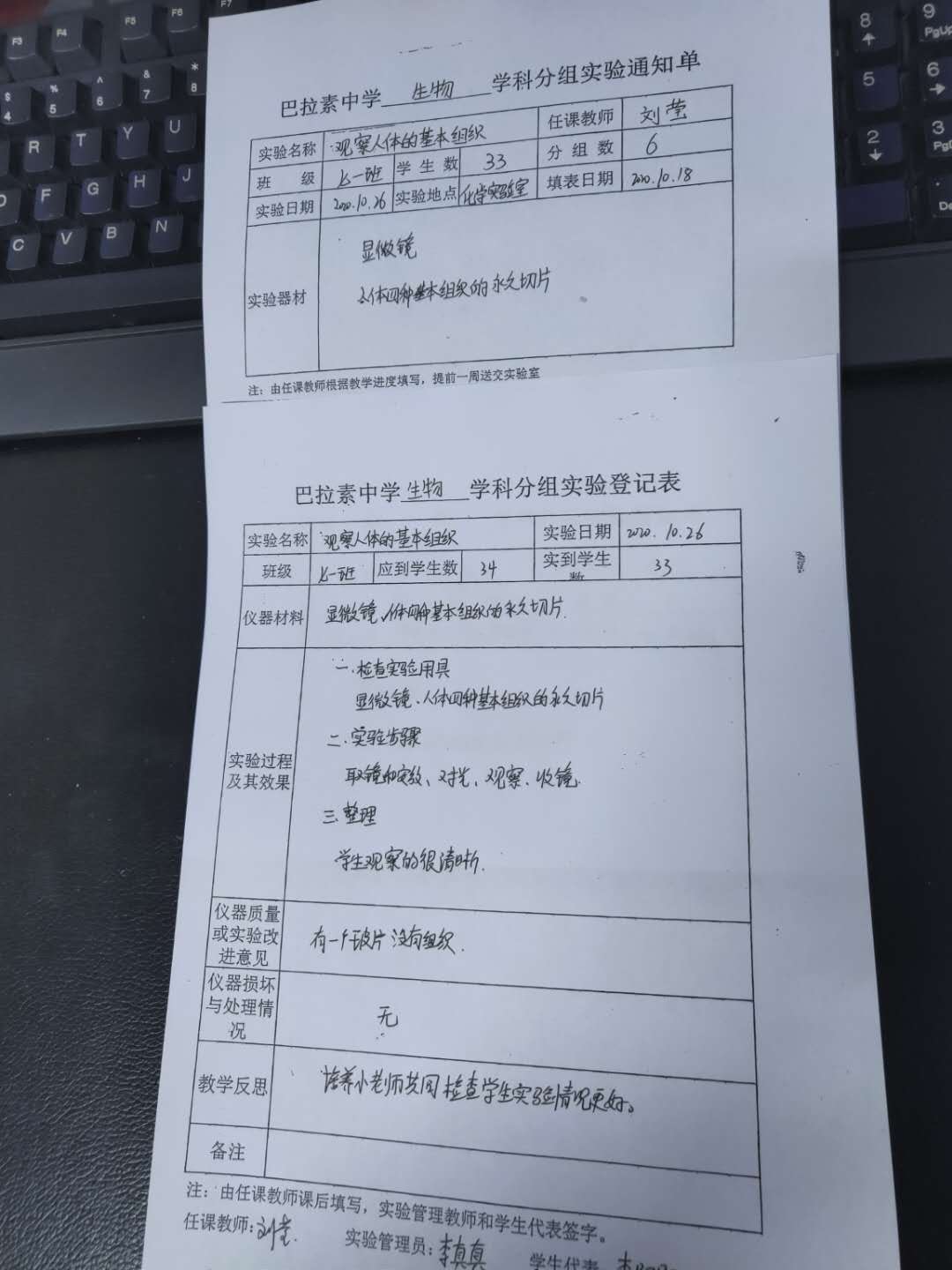 实验登记表