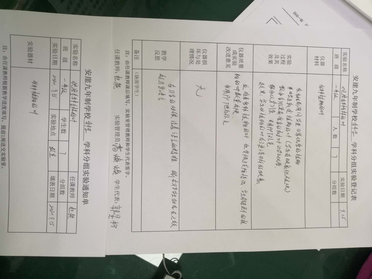 实验登记表
