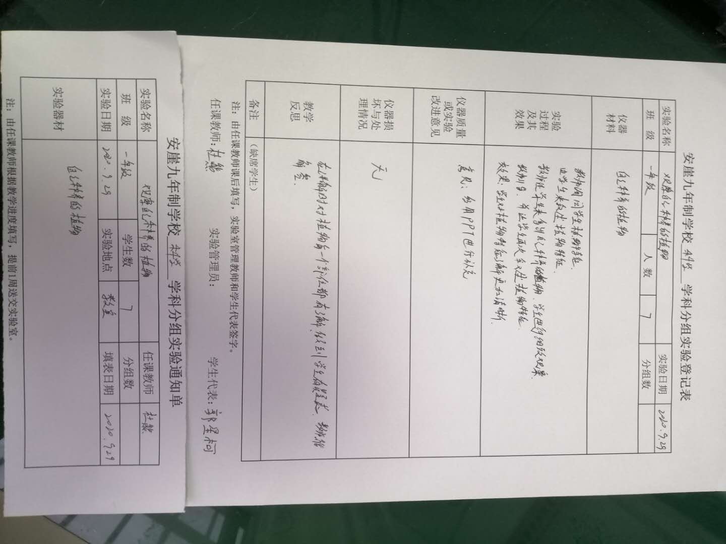 实验登记表