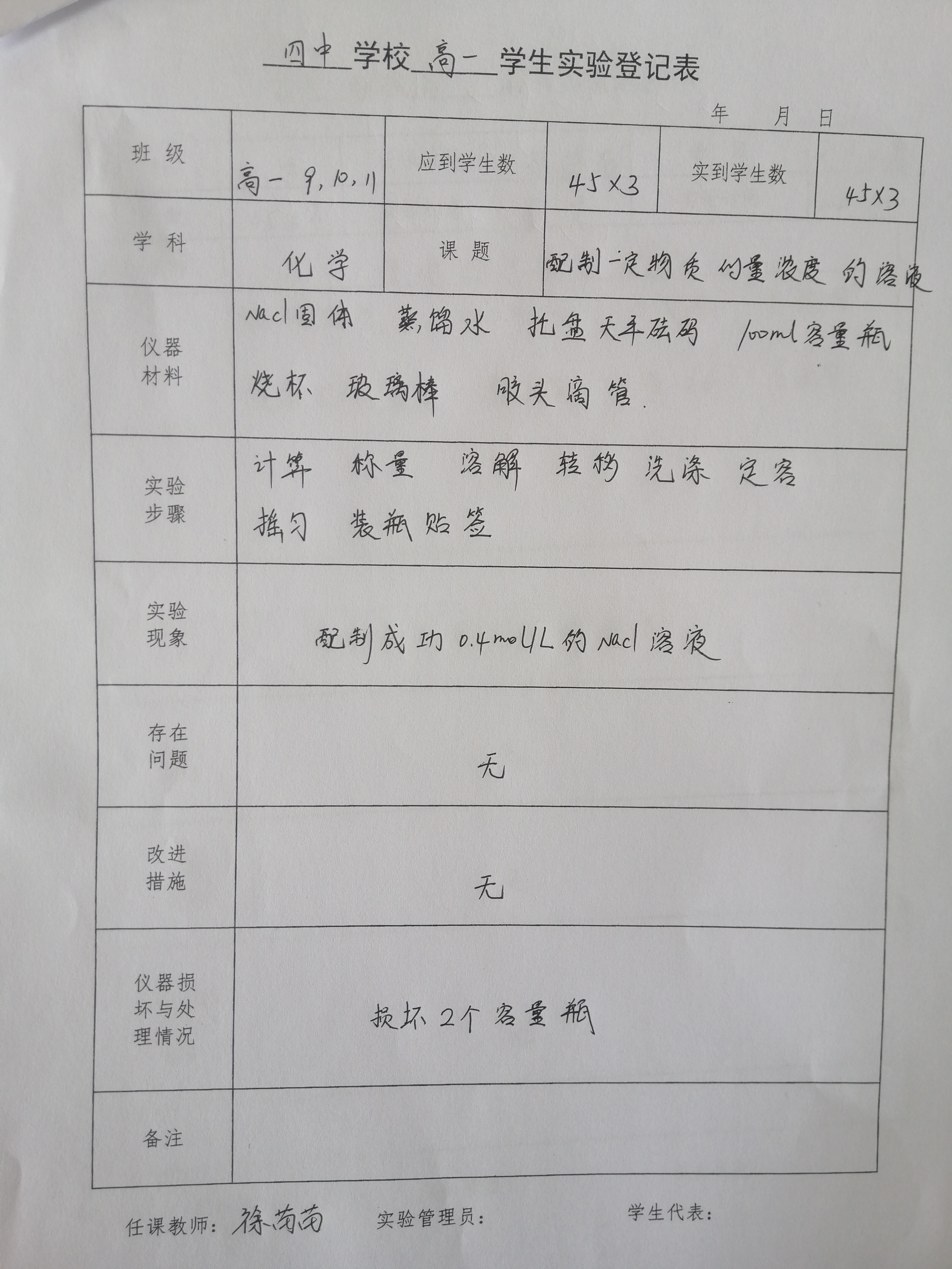 实验登记表