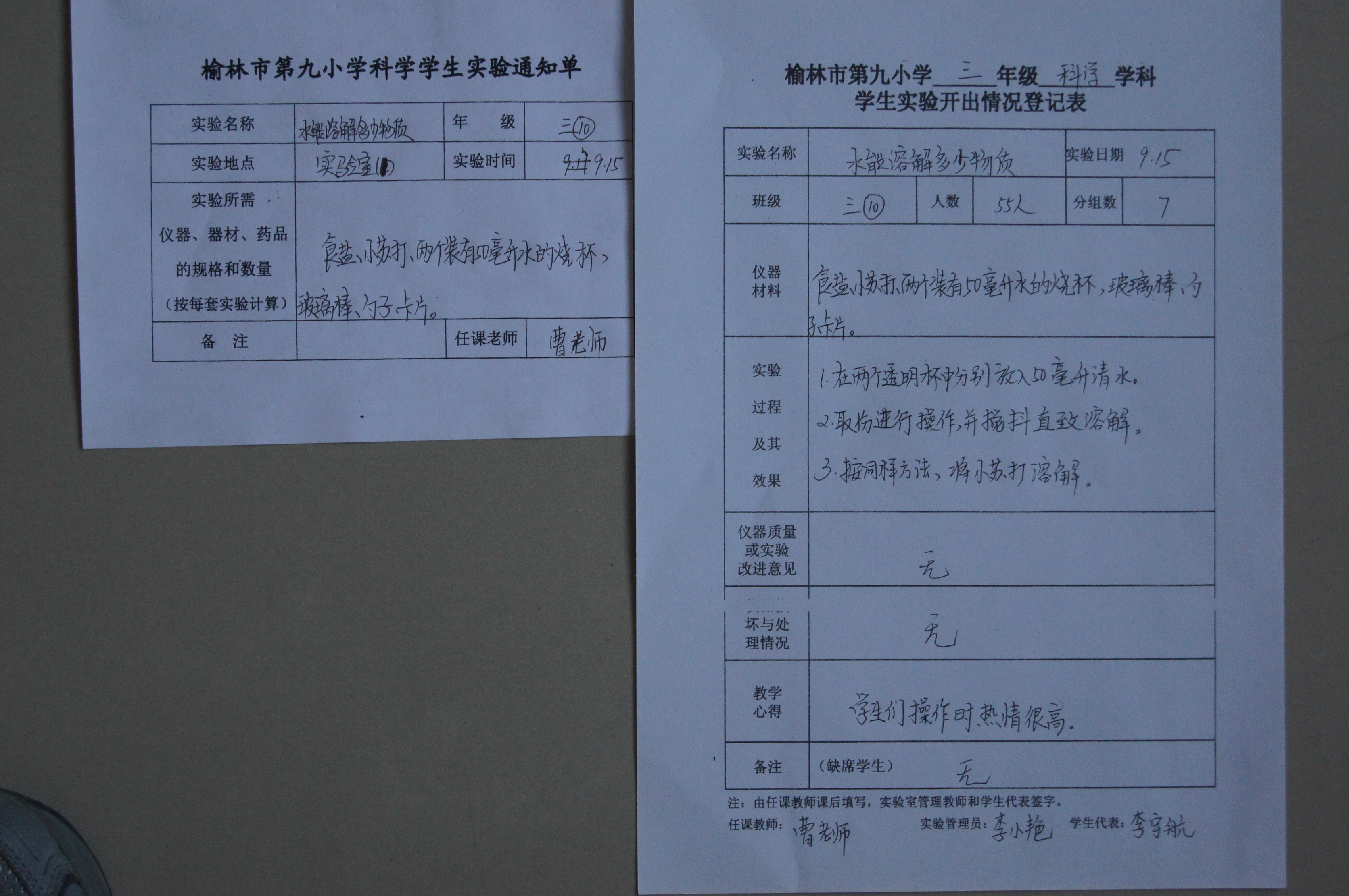实验登记表