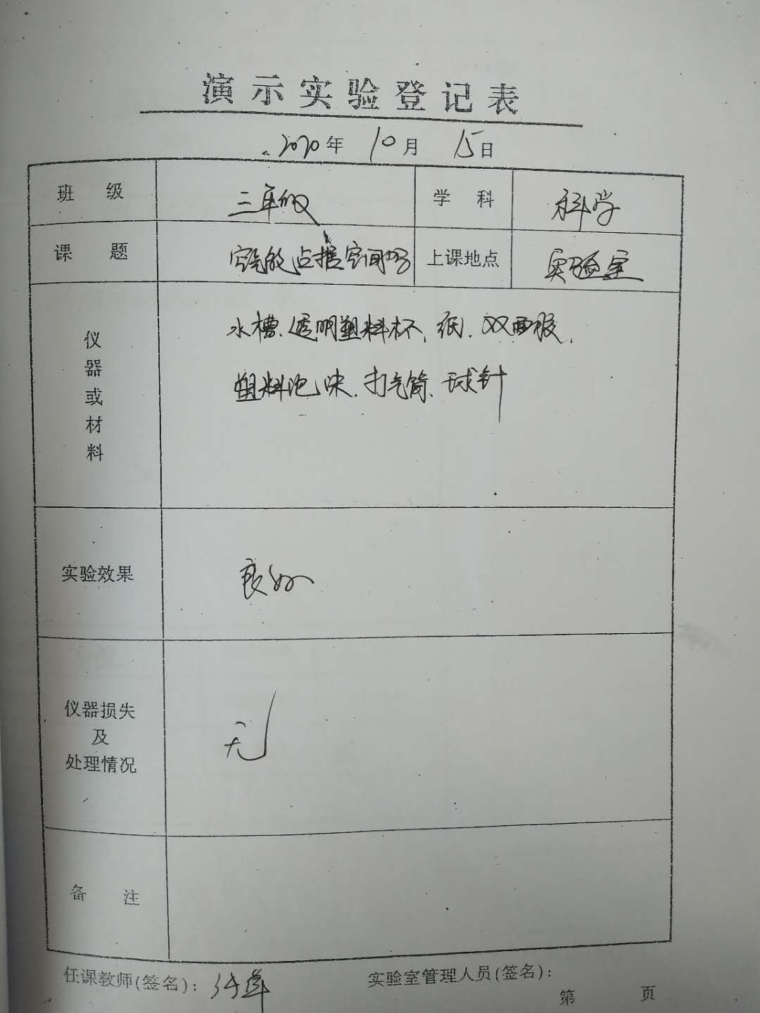 实验登记表