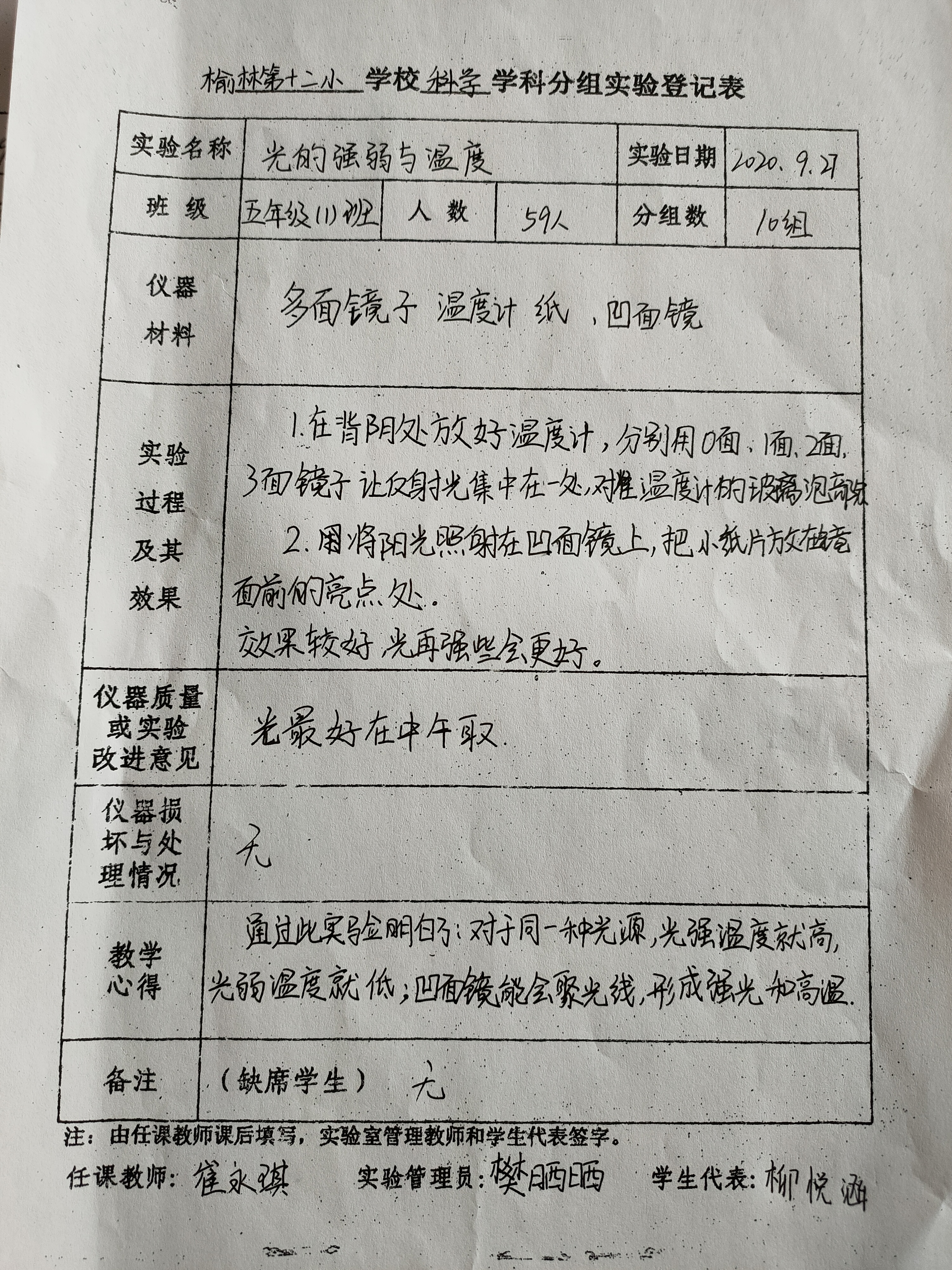 实验登记表