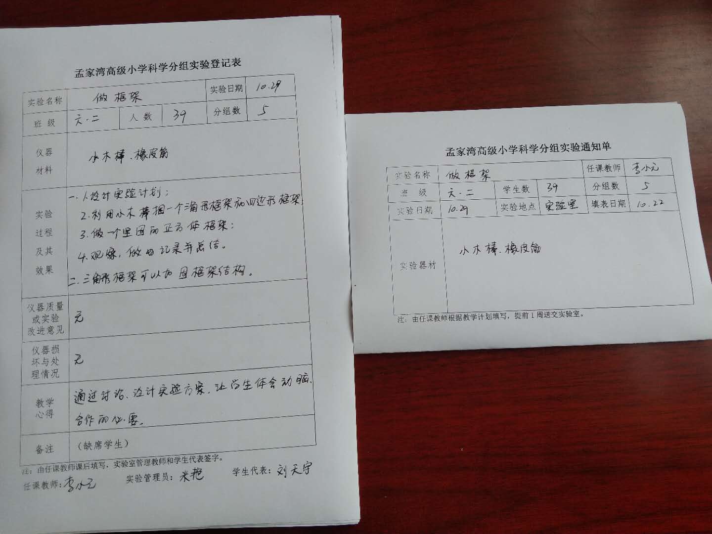 实验登记表