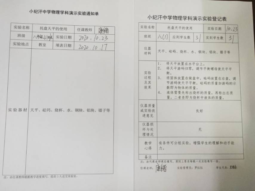 实验登记表