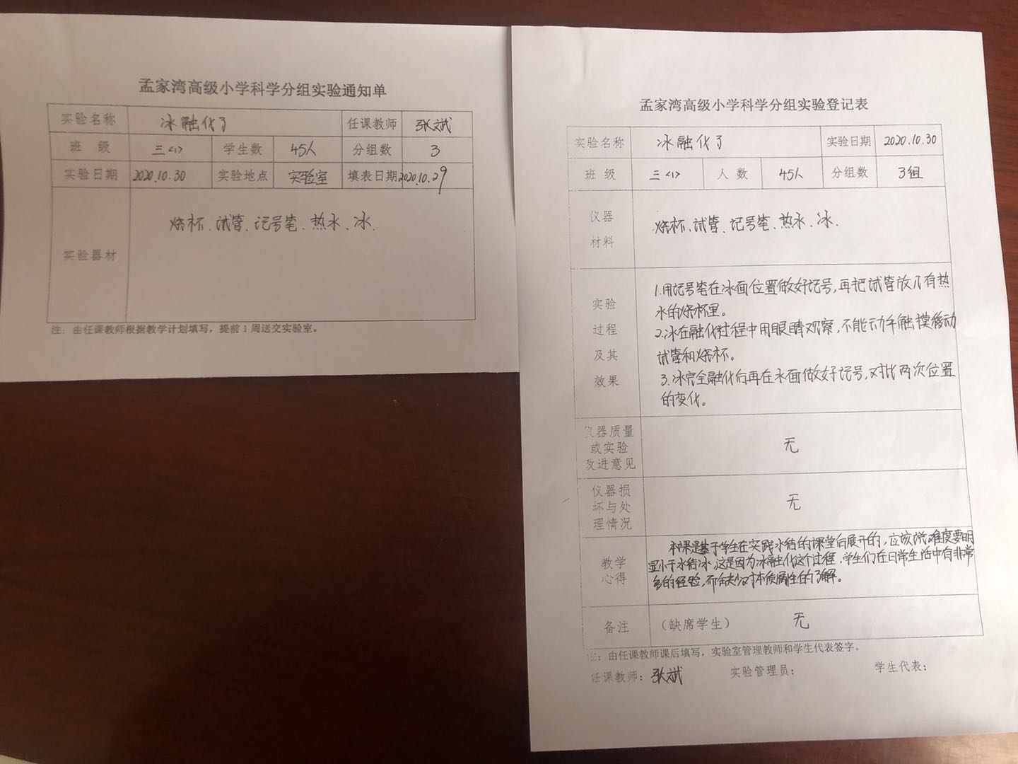 实验登记表