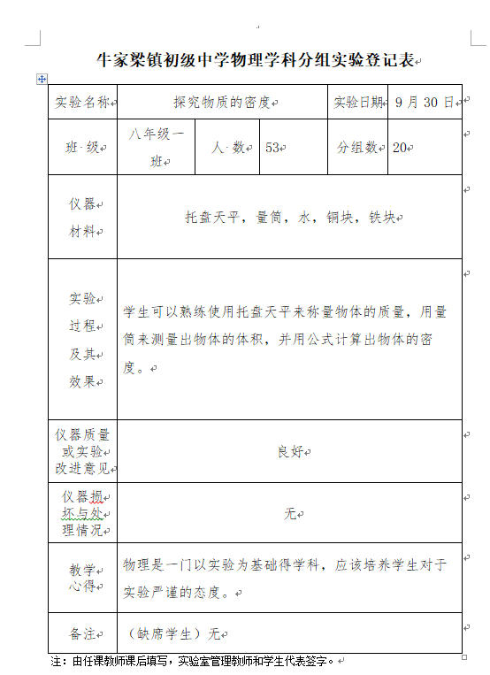 实验登记表
